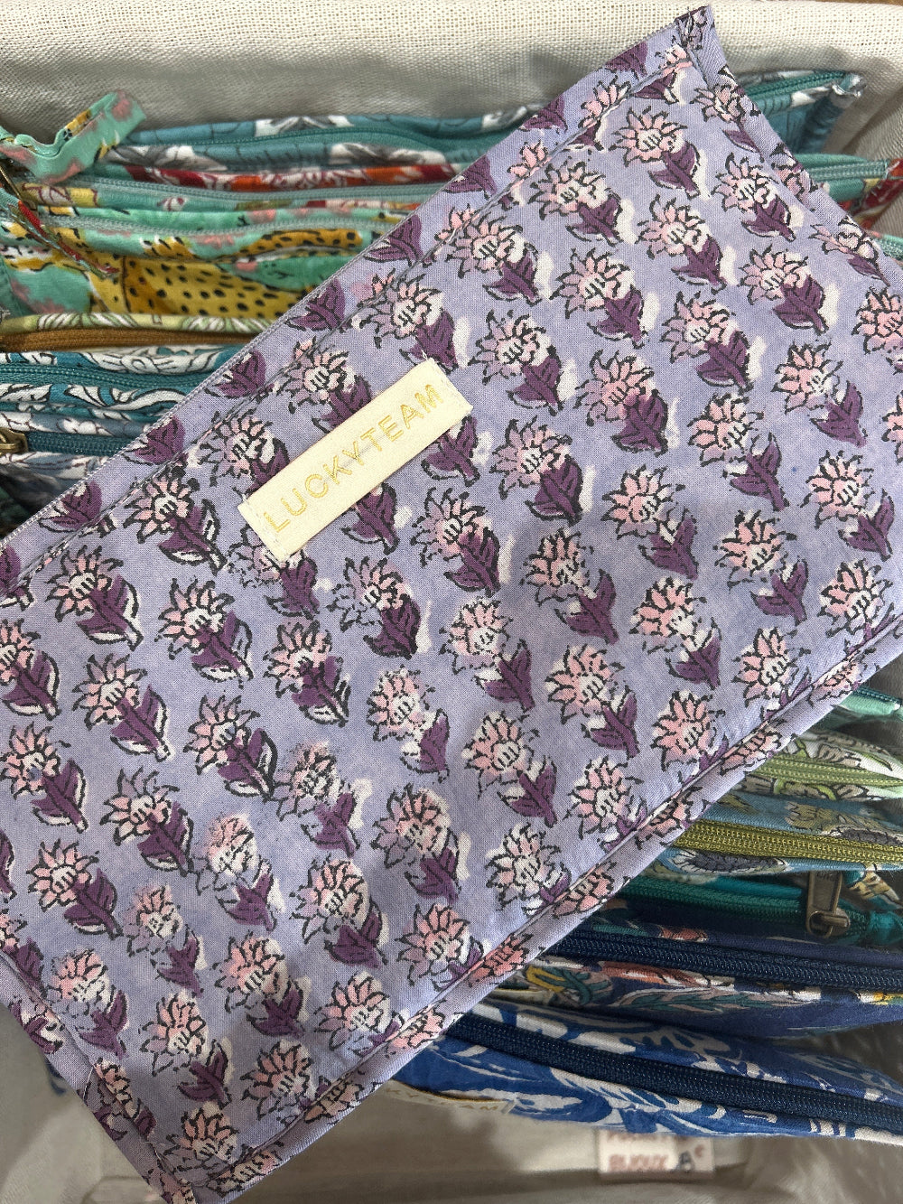 Il est temps de voyager léger et rapide avec notre nouvelle pochette de voyage. Nous avons la pochette parfaite ! Réalisée à partir de tissu imprimé en Inde en utilisant la méthode du block print. Elle est de taille compacte et pratique, épaisse et molletonnée, dotée d'une fermeture éclaire, qui vous accompagnera partout. Nous savons que c'est votre nouveau compagnon de voyage !
