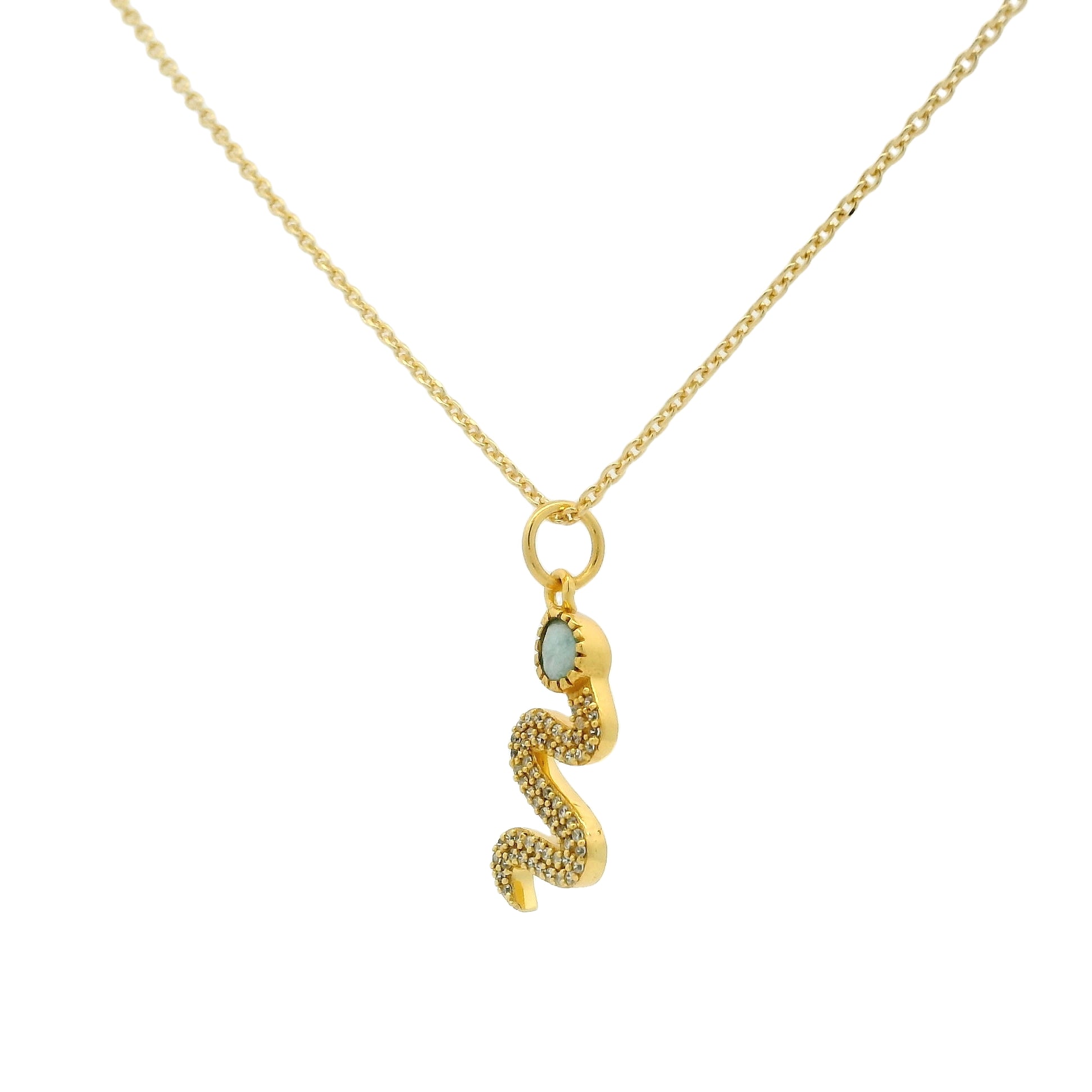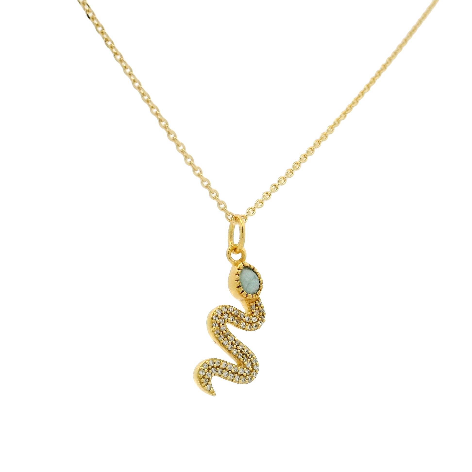 Collier doré serpent avec Amazonite et zircons blancs 42 cm