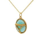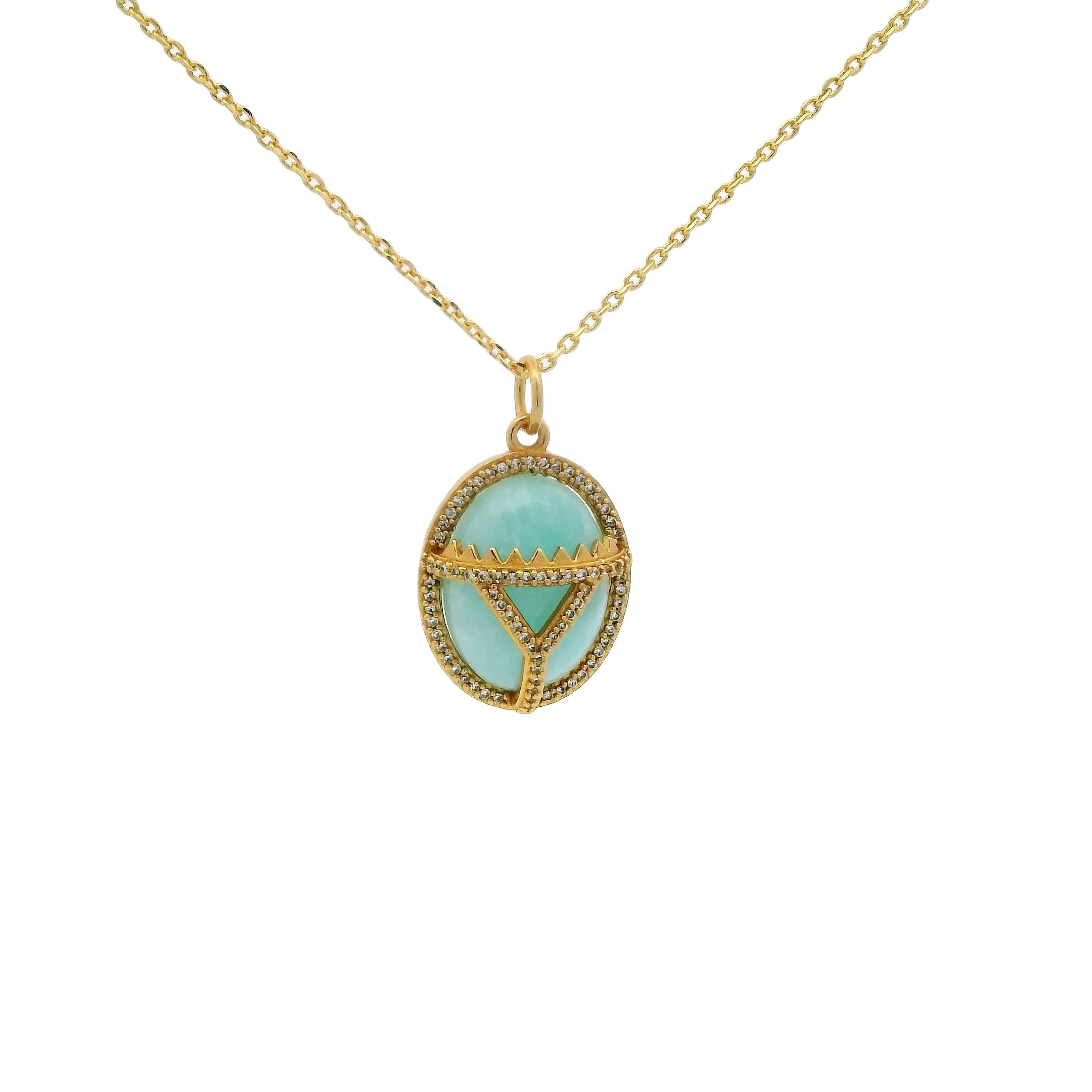 Collier doré scarabée amazonite zircons 42 cm