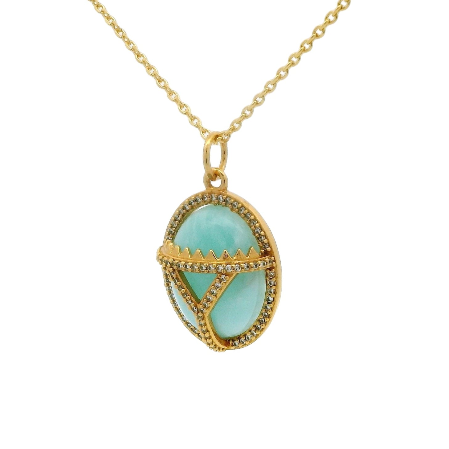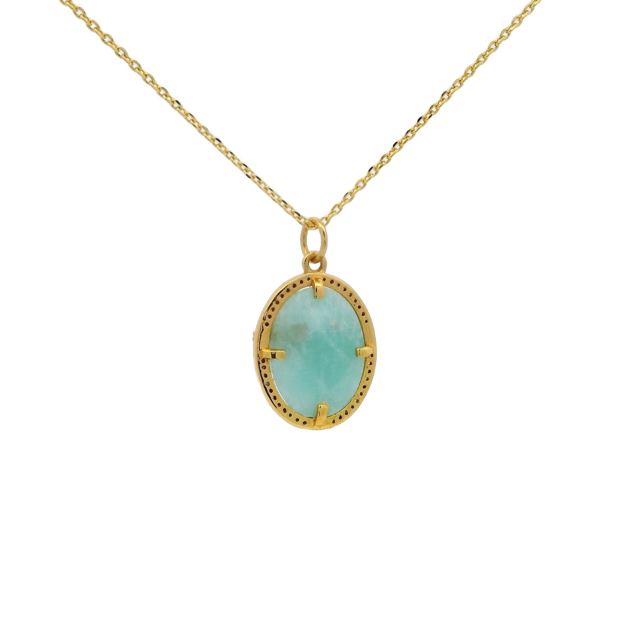 Pierre en cabochon en amazonite et zircons blancs