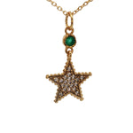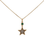 Pendentif étoile ornée de zircons et surmonté d'une pierre naturelle.
