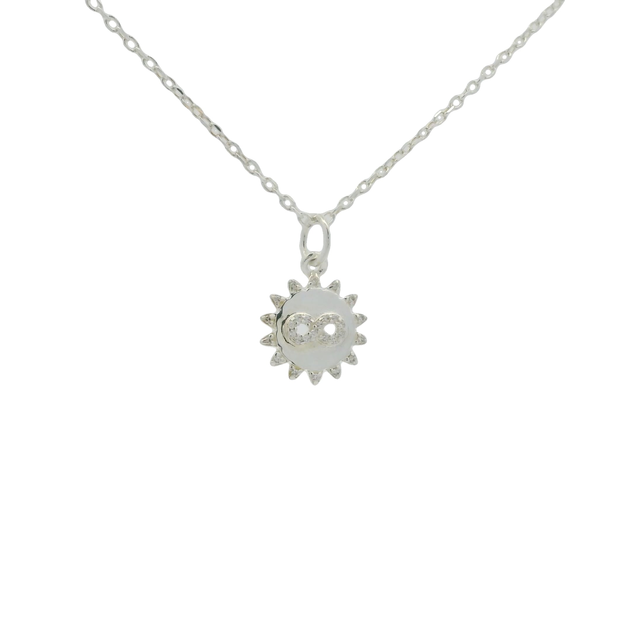 Collier en argent 925 médaille soleil infini zircons blancs 42 cm