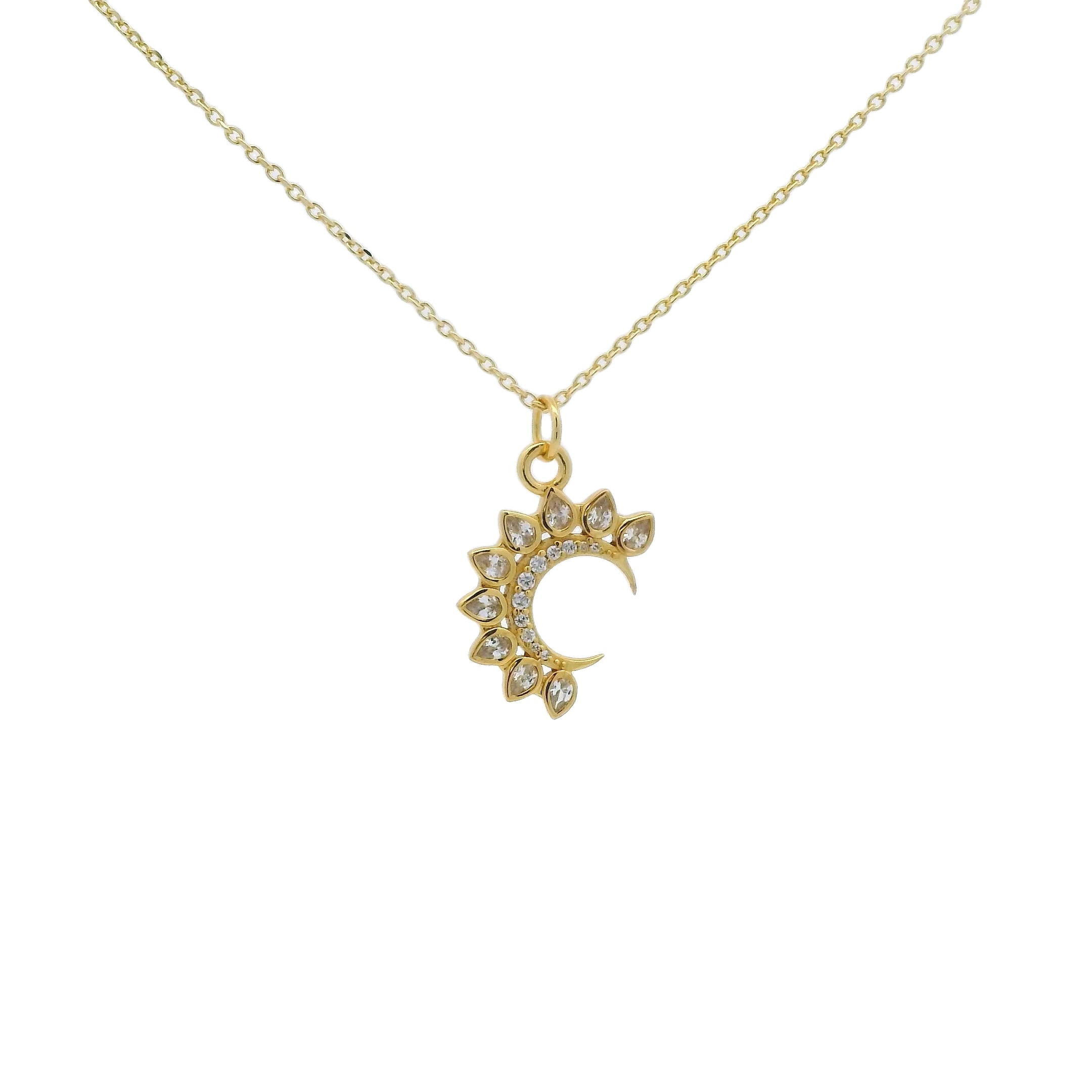 Collier doré demi lune zircons 42 cm