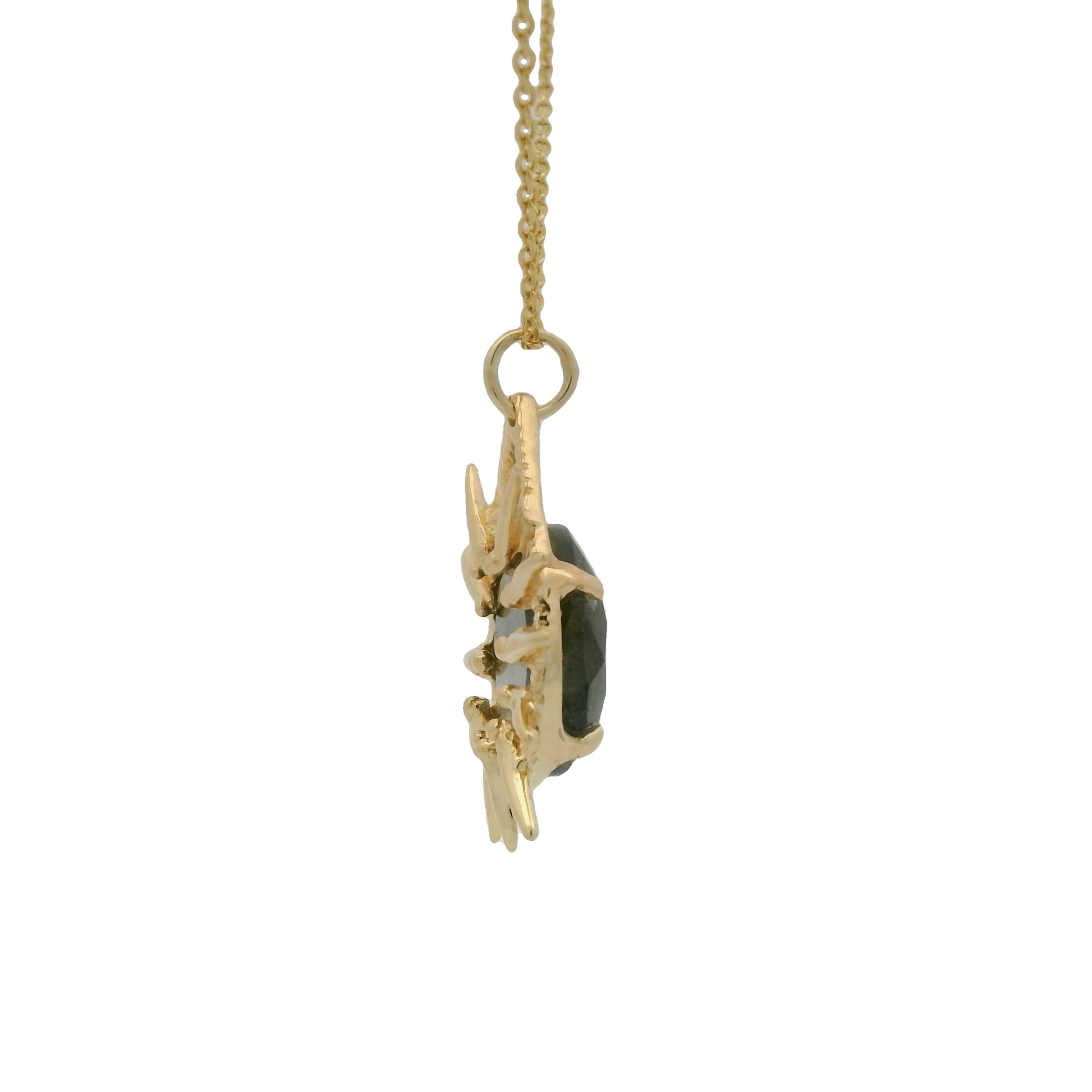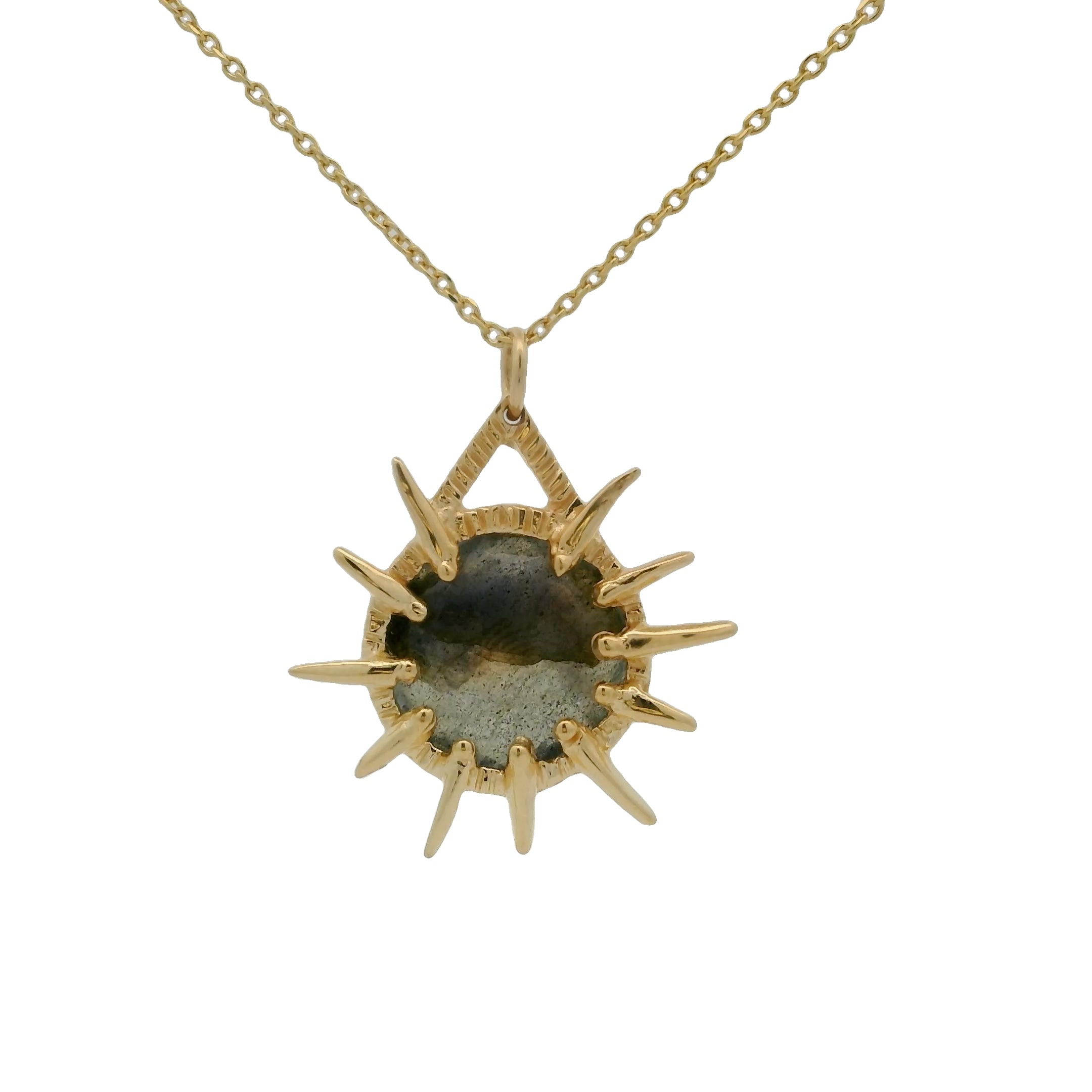 Collier doré soleil avec rayons et Labradorite sertie 4 griffes 42 cm