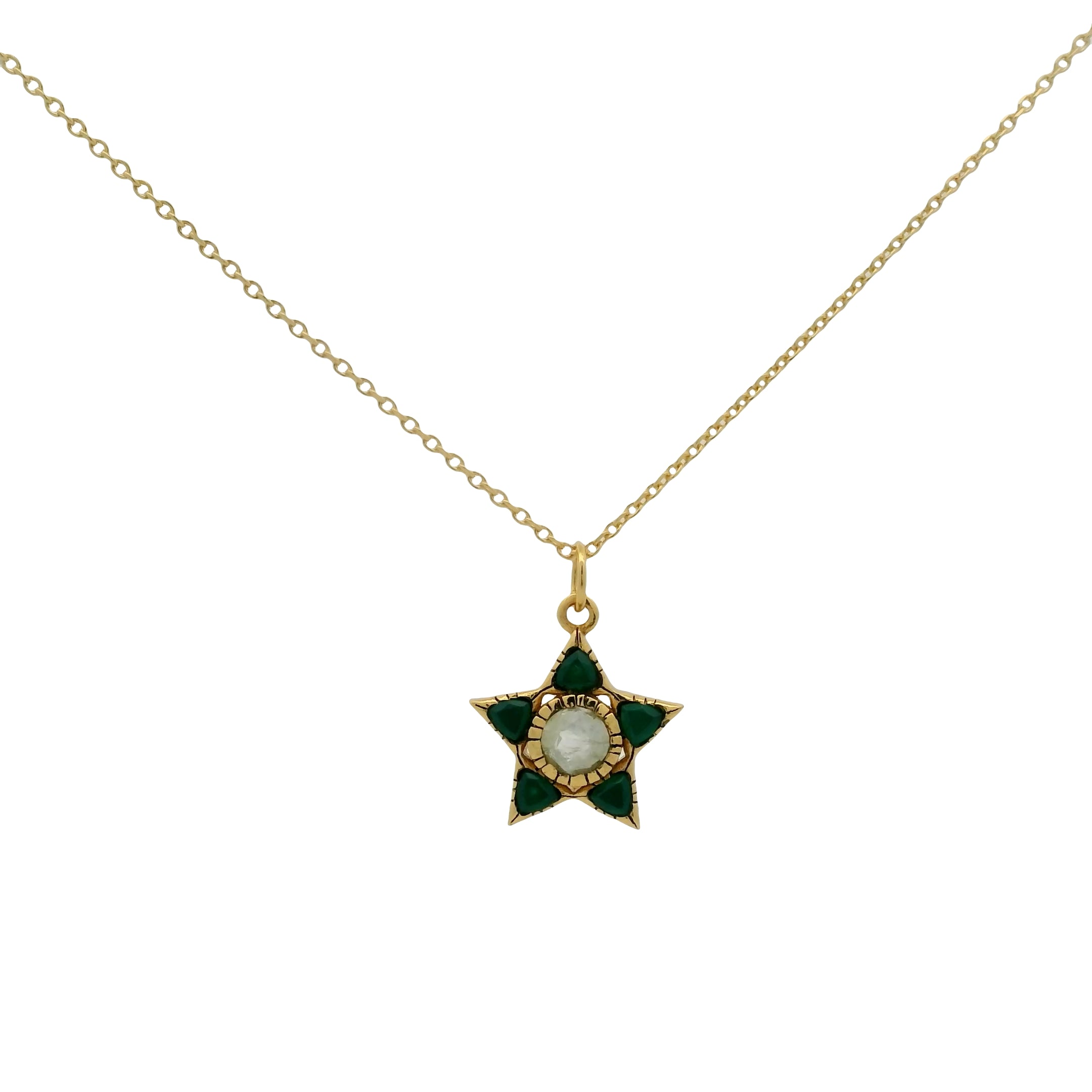 Collier doré étoile en onyx verte et prehnite