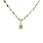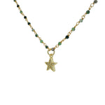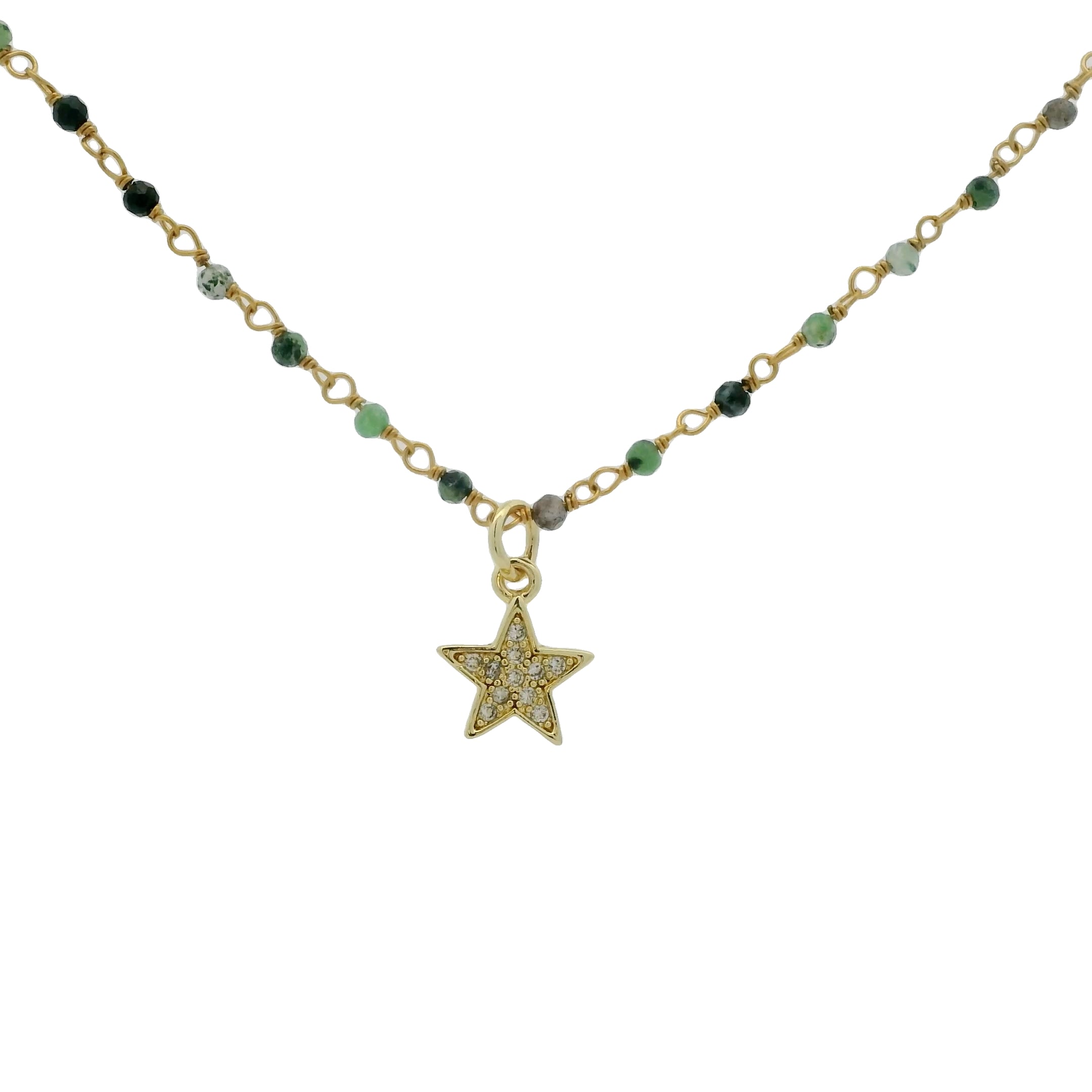 Collier rosary doré étoile zircons et rubis zoisite 40cm