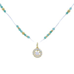 Collier doré fil blanc onyx verte facettées et médaillon zircon étoile 42cm