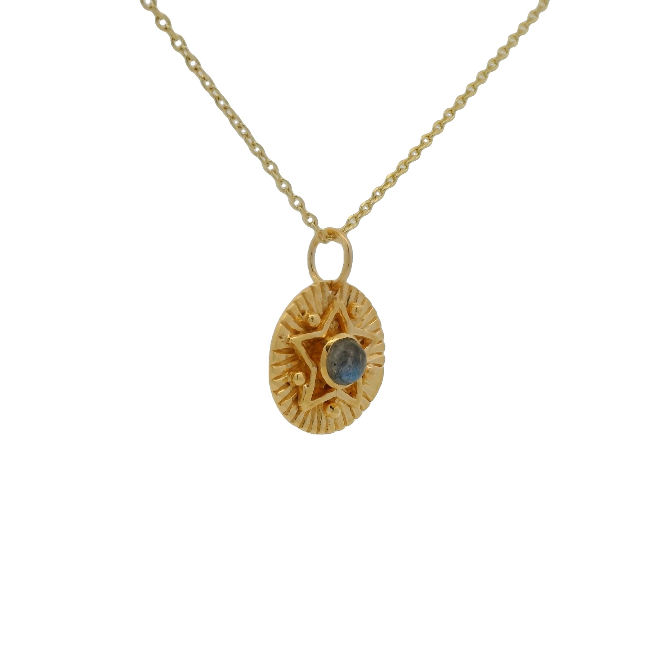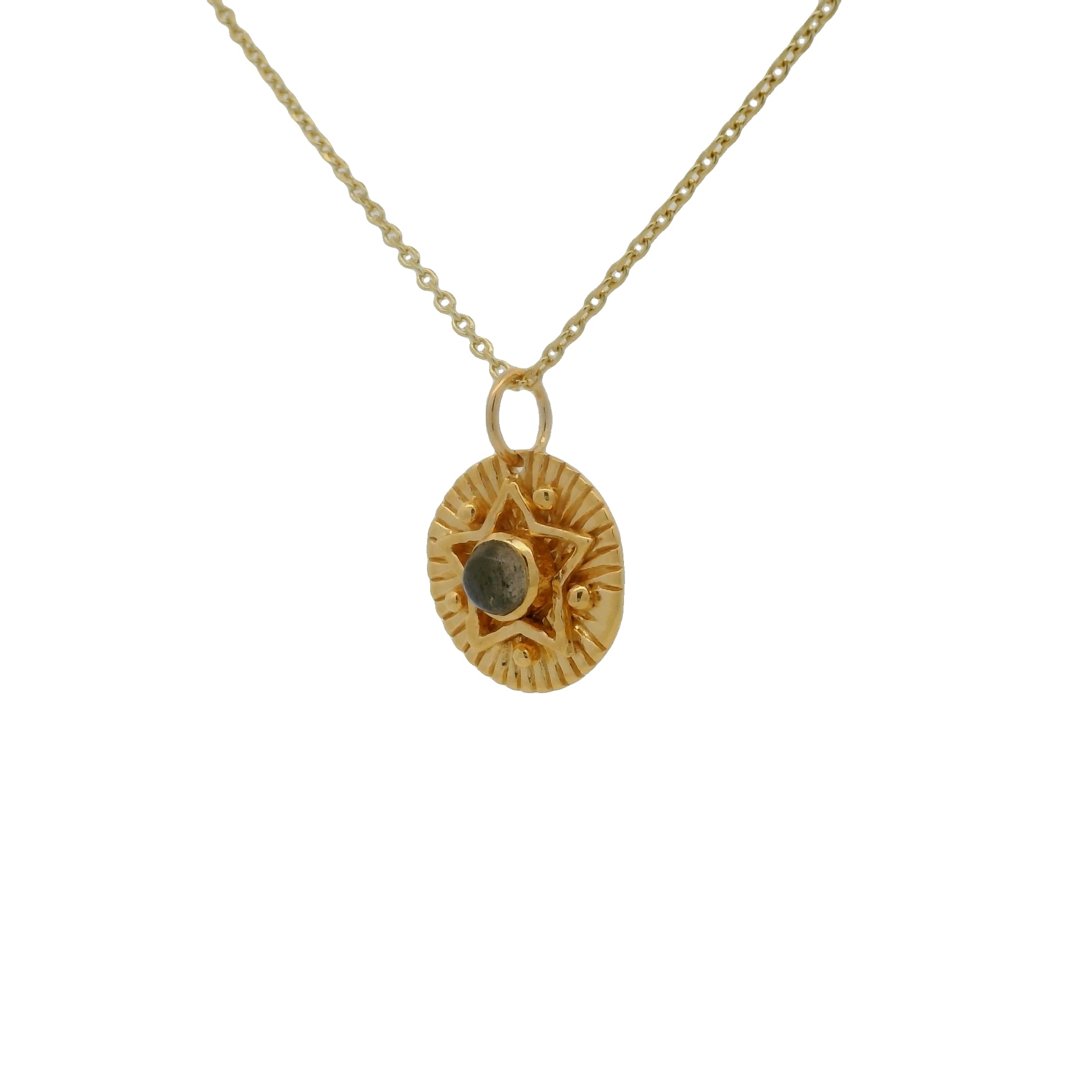 Collier doré médaille ronde étoile et Labradorite 42 cm