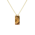 Collier en laiton doré à l'or fin 18k et pendentif gravé à la main d'un demi soleil.