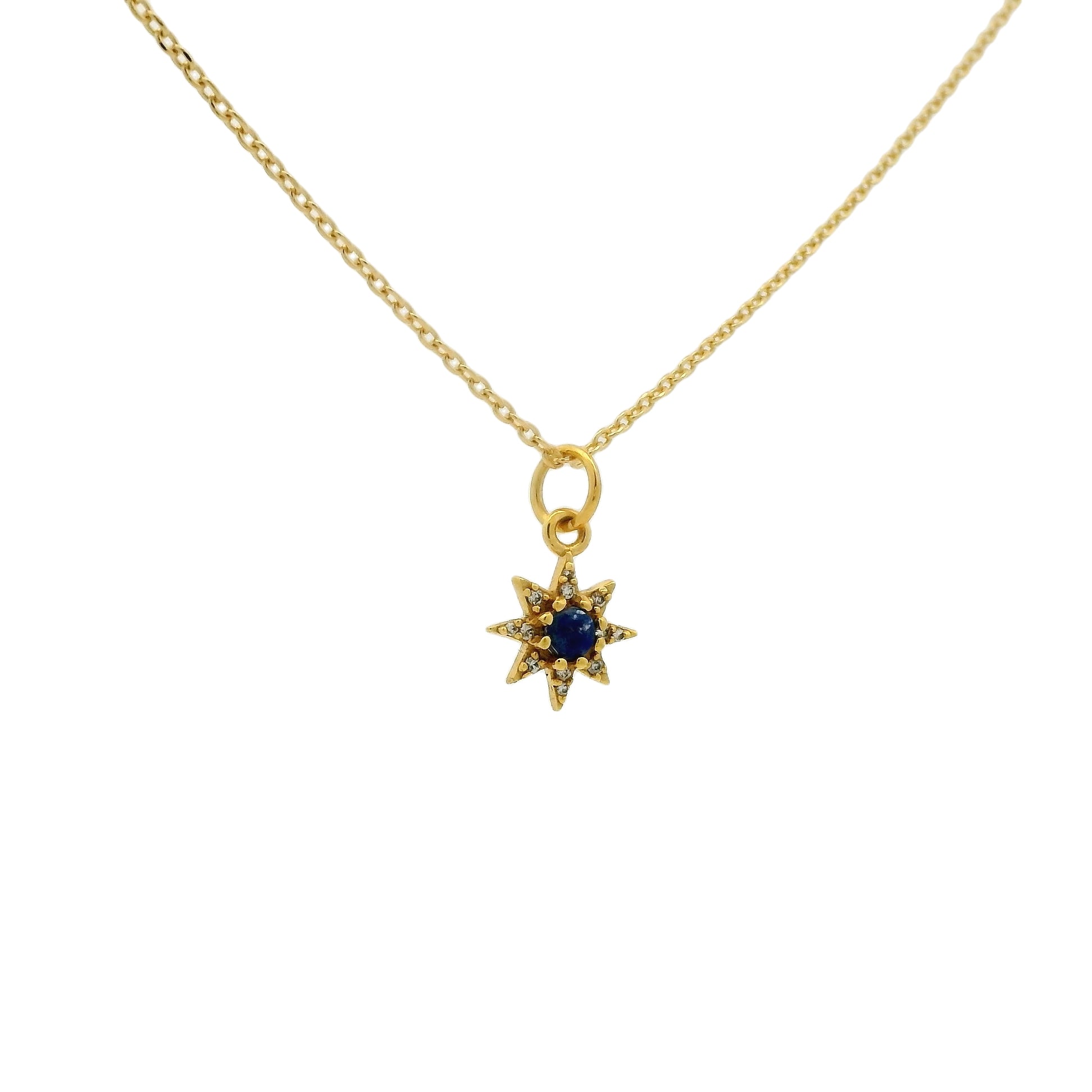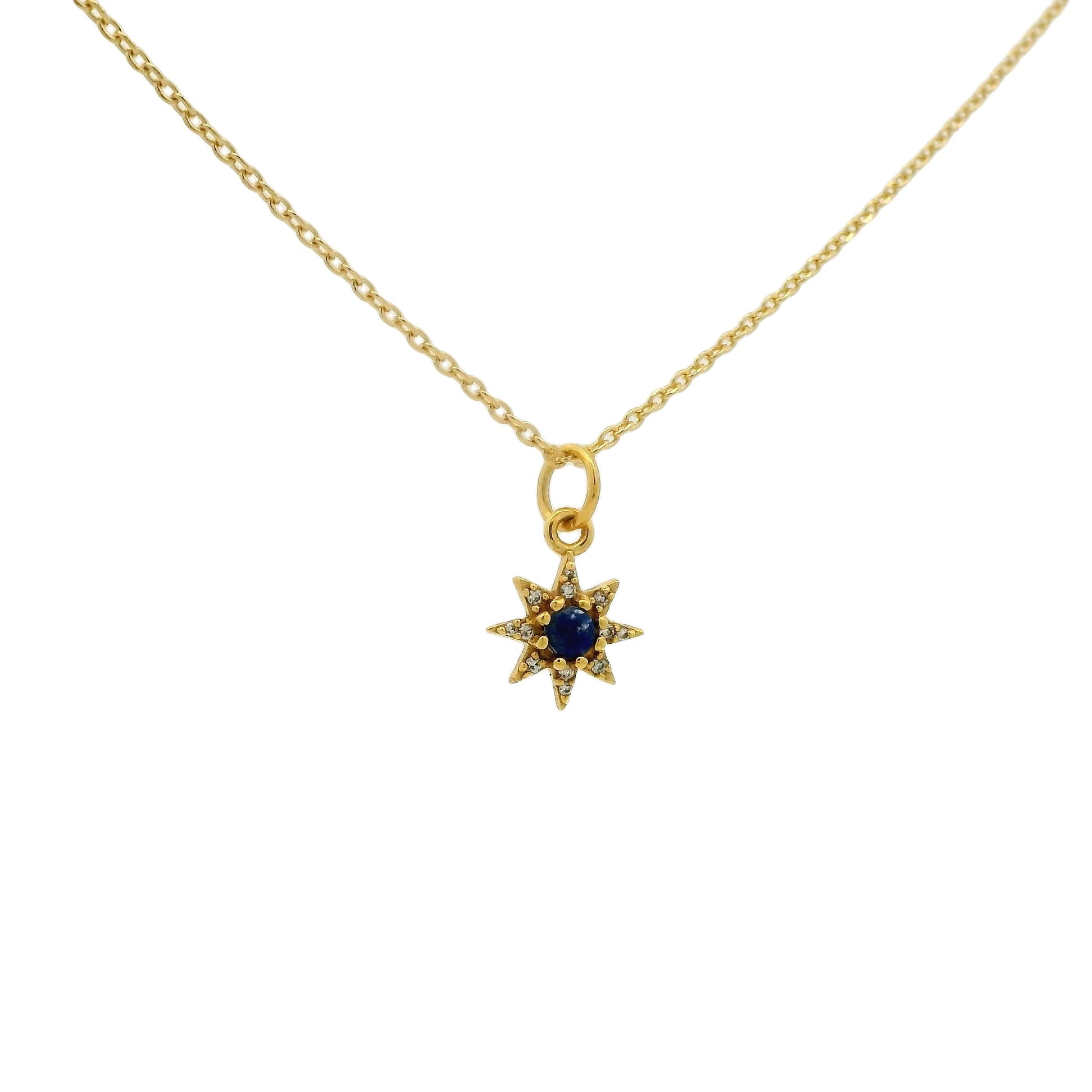 Collier doré petite étoile lapis lazulis et zircons blancs 42 cm