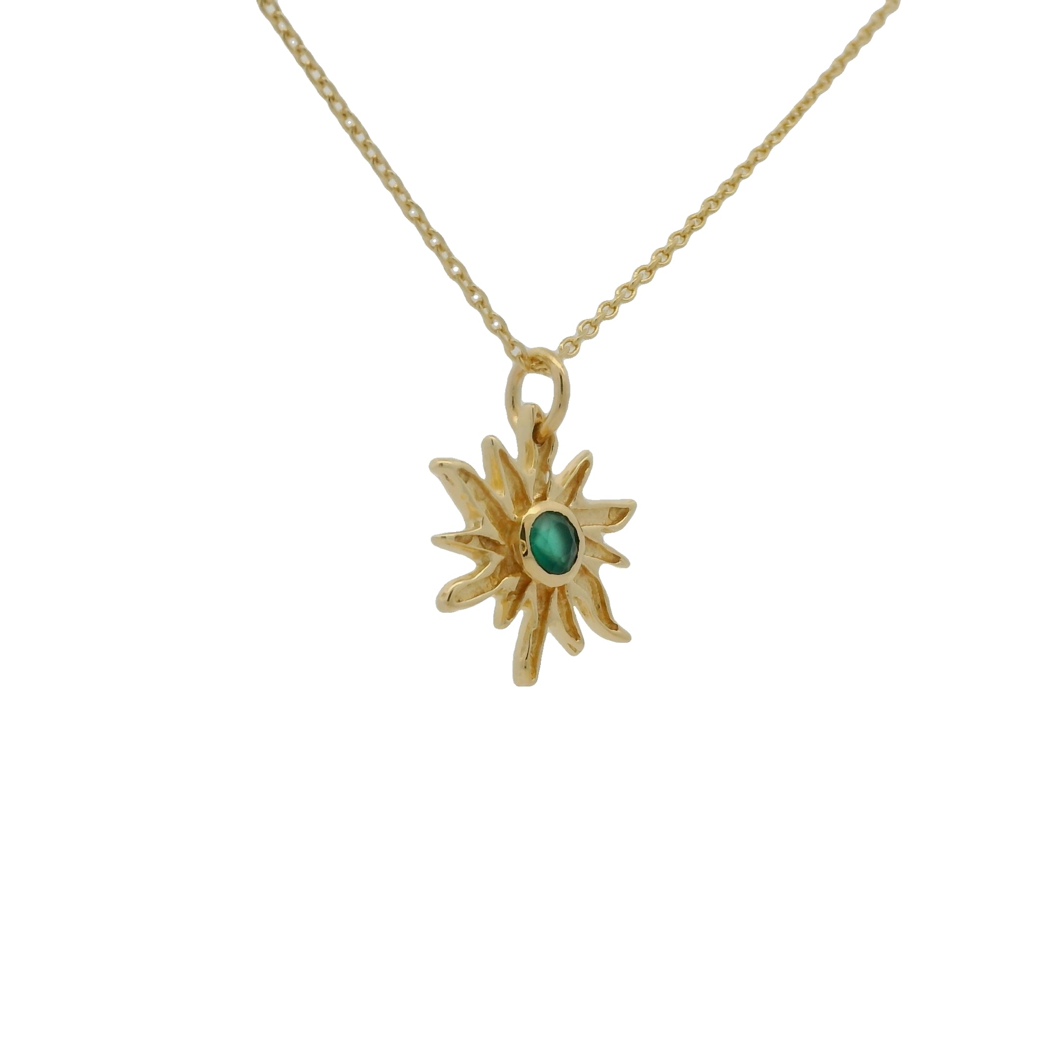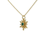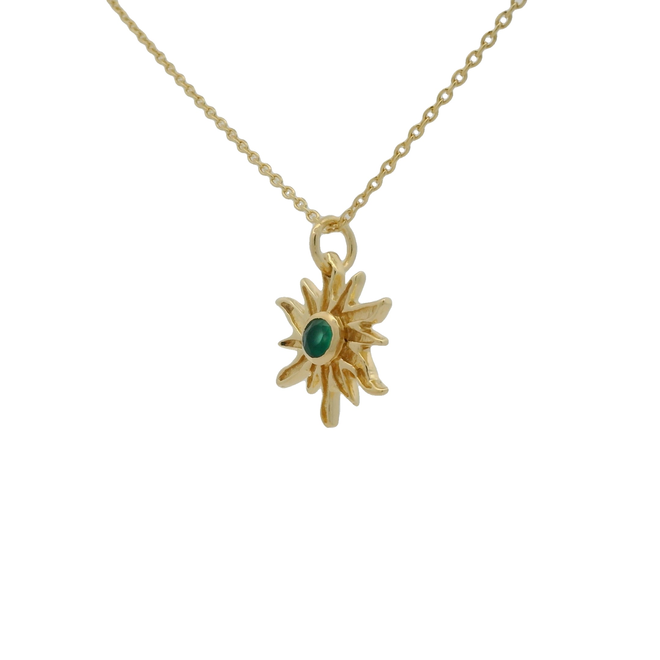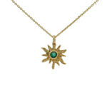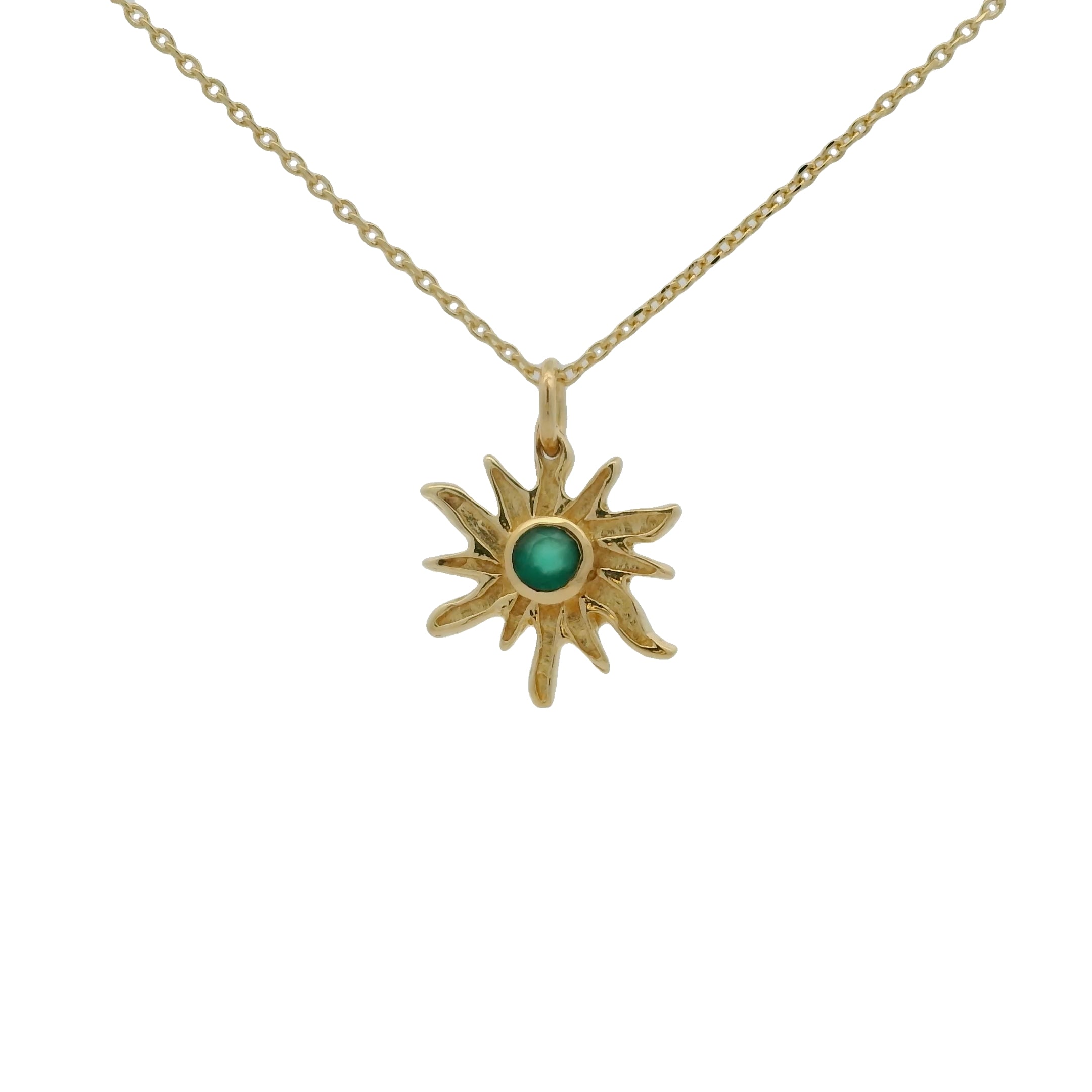 Collier doré soleil rayons irréguliers et onyx verte 42 cm