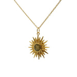 Collier doré pendentif soleil et pierre Labradorite facettée 42cm