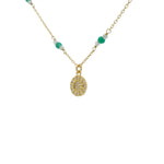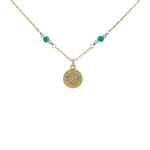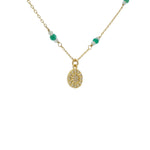Collier doré préhnite et onyx verte et soleil avec zircons blancs 44 cm