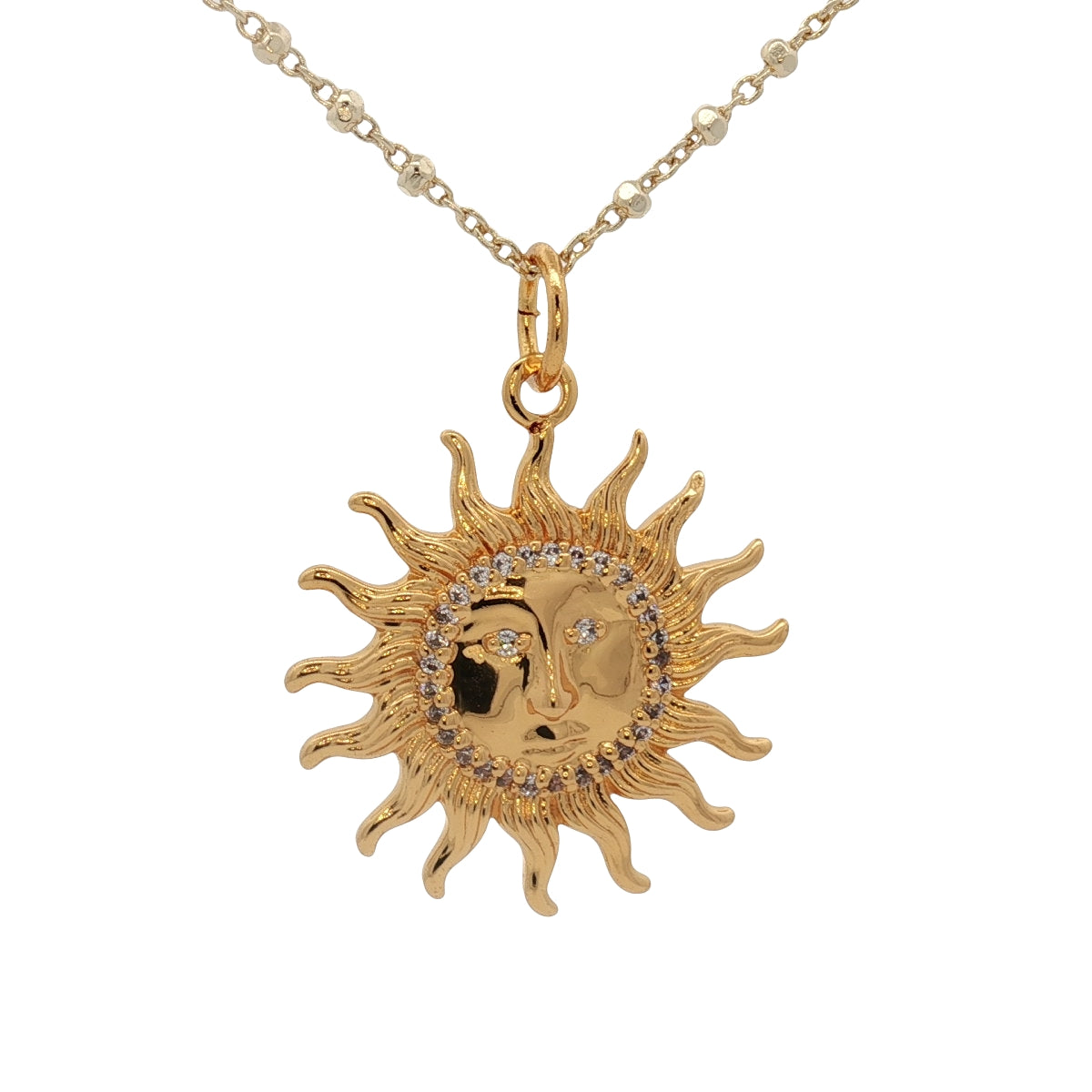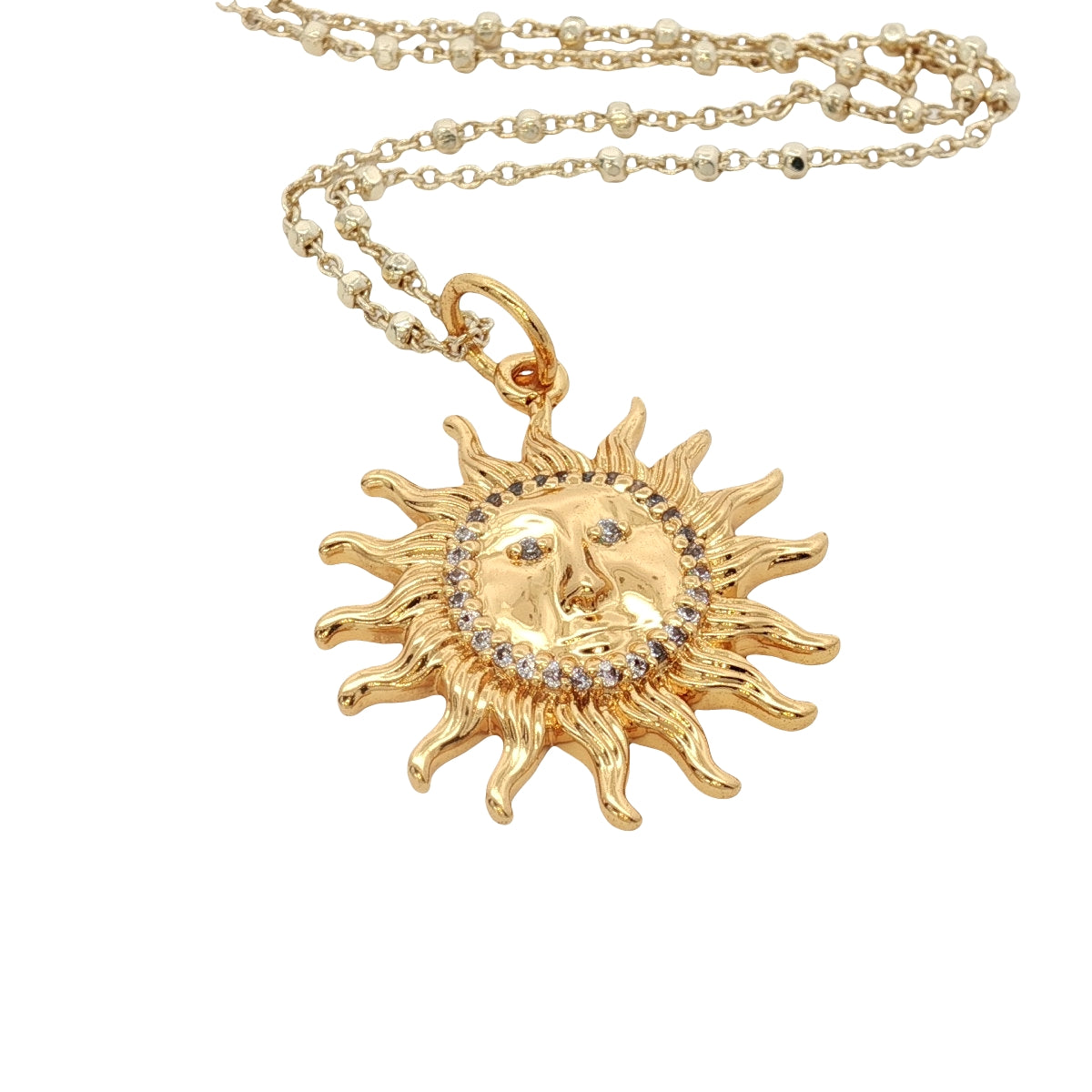 Collier doré soleil visage zircons 42 cm