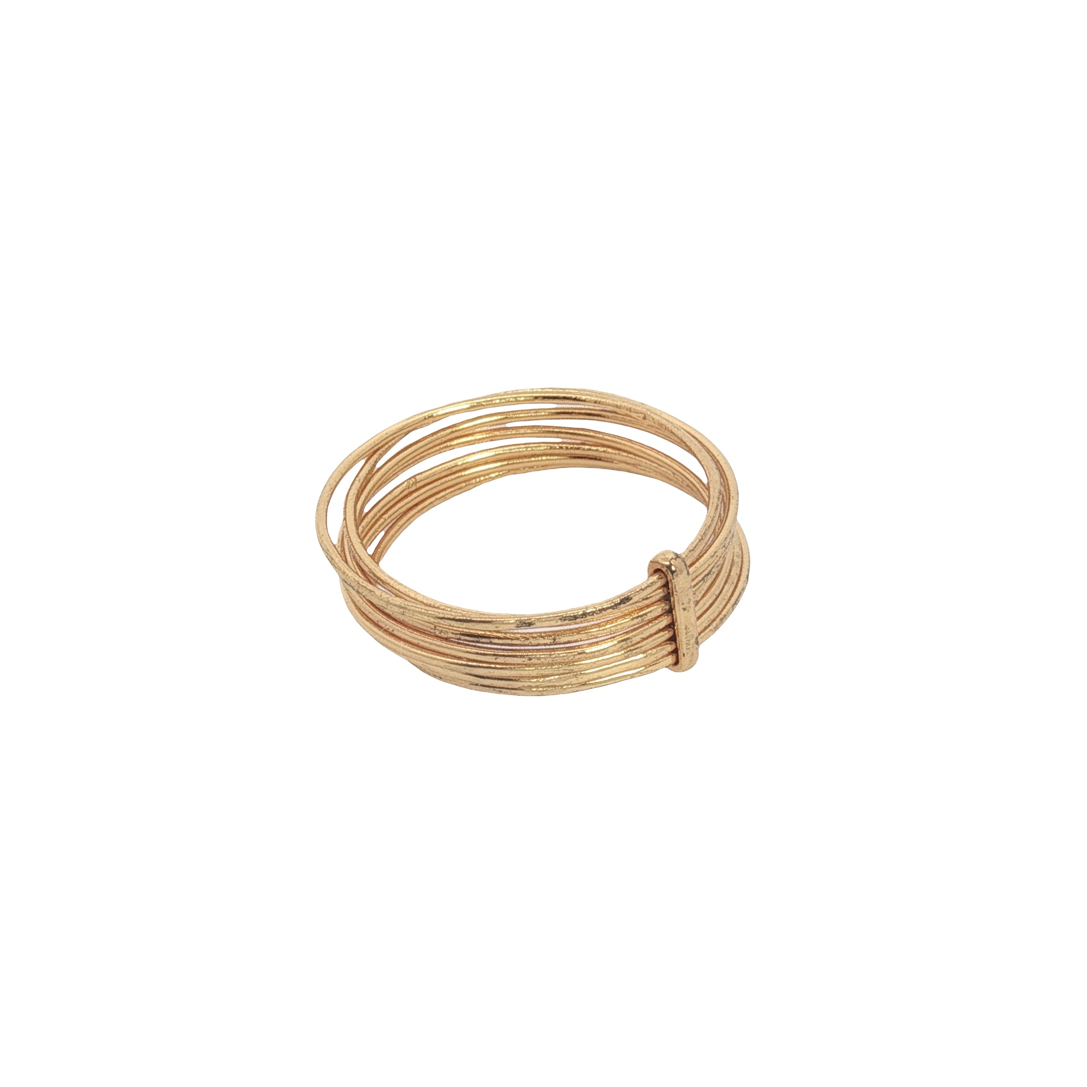Bague dorée 7 anneaux reliés par une barre