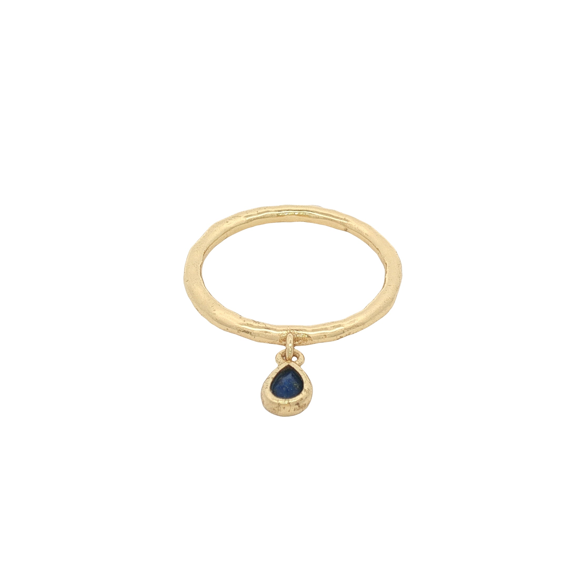 Bague dorée martelée avec goutte en lapis lazulis