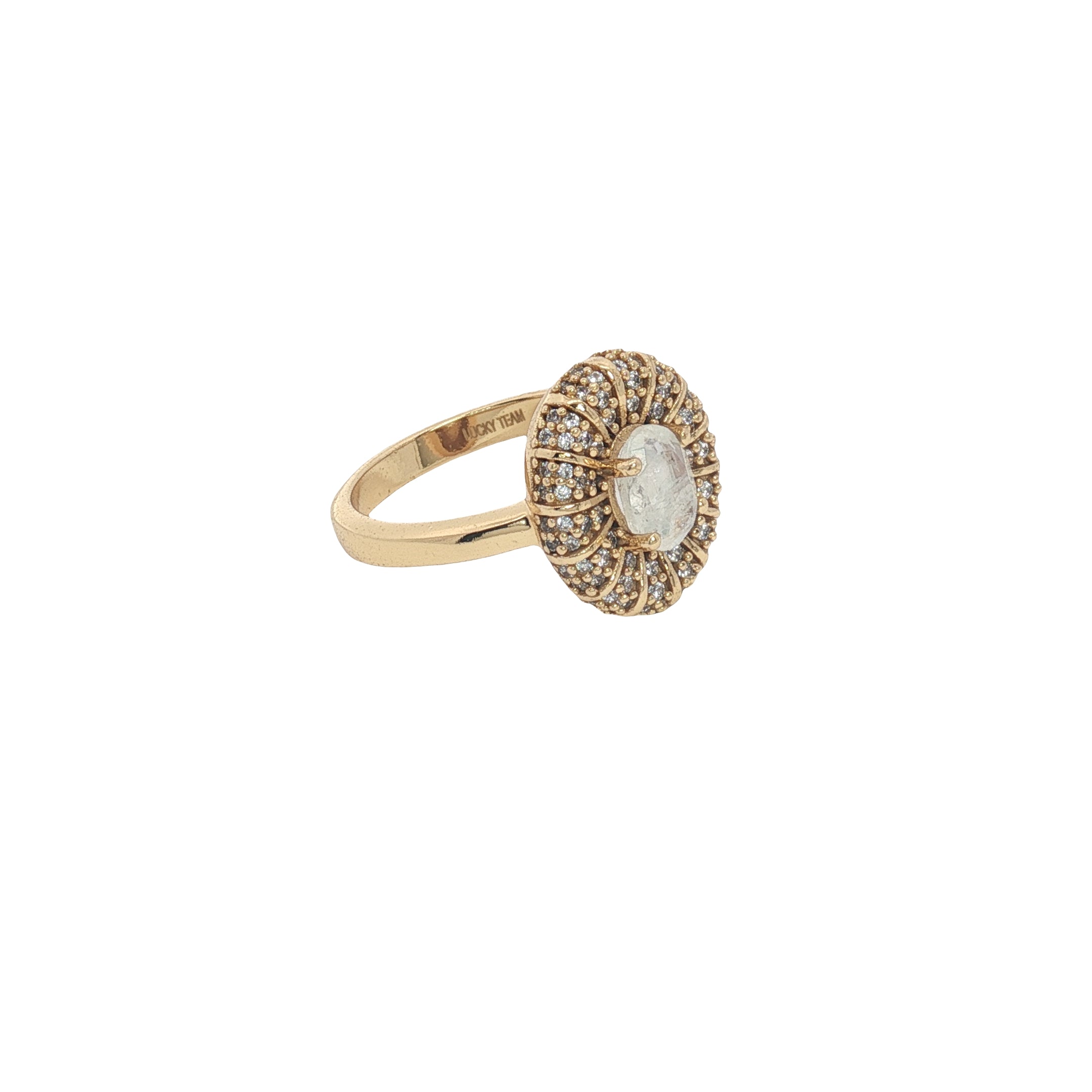 Couronne ornée de zircons blancs et barres dorées autour de la pierre : 15 mm x 13 mm