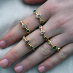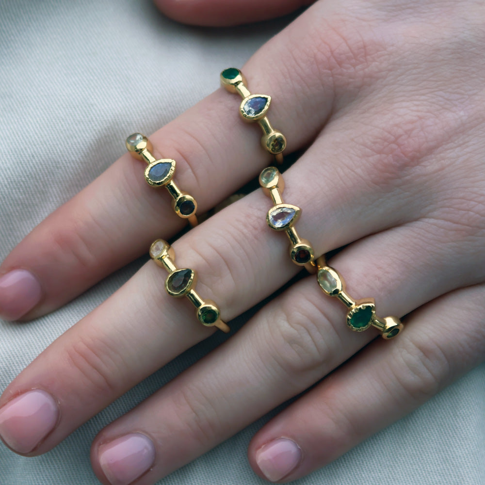 Bague dorée Gipsy en labradorite, pierre de lune et tourmaline verte