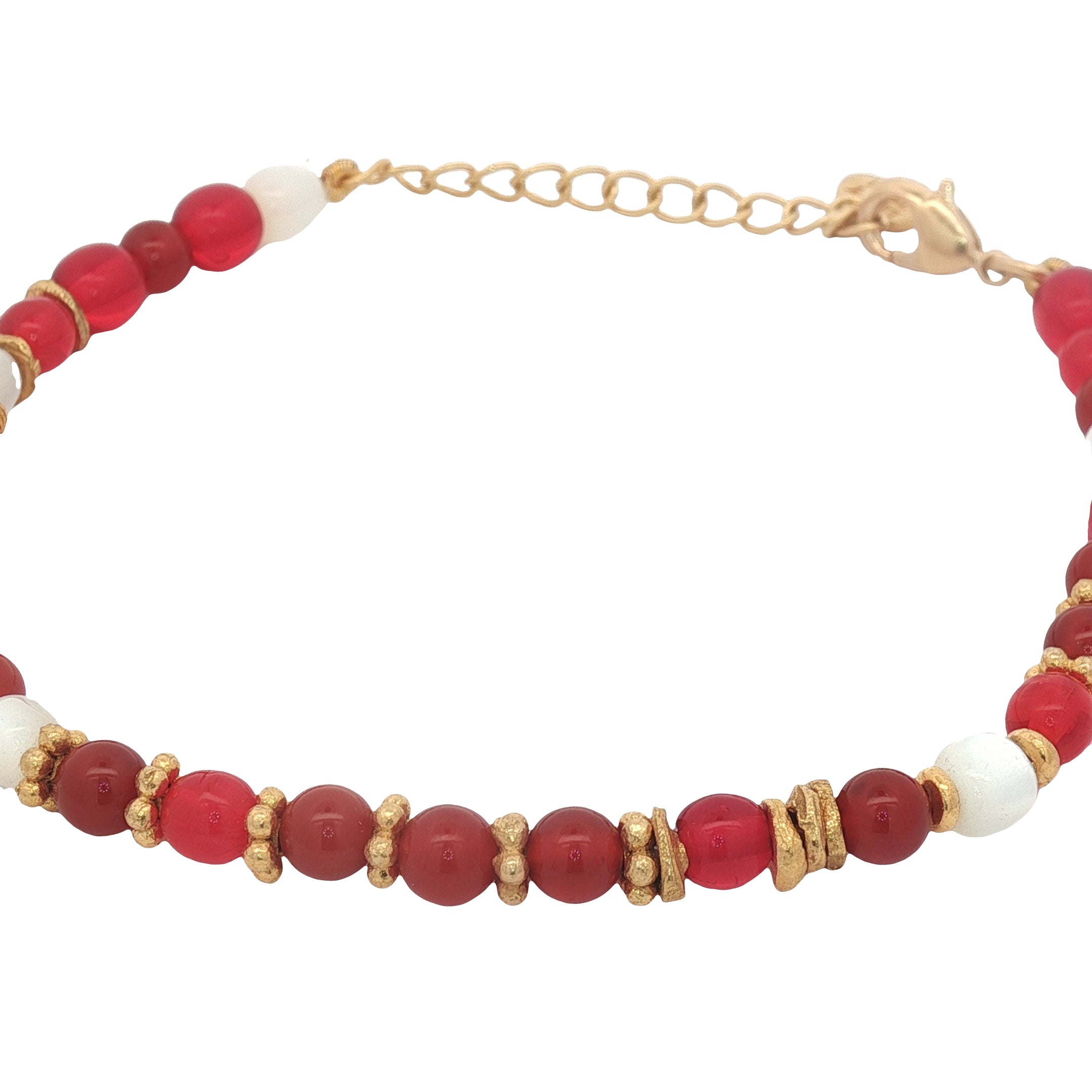 Bracelet doré avec onyx rouge, nacre, couronnes et disques dorés