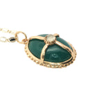 Collier doré médaillon onyx verte avec cage et prehnite 50 cm