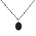 Collier doré onyx noire cabochon perles onyx noire et lapis lazulis 60 cm
