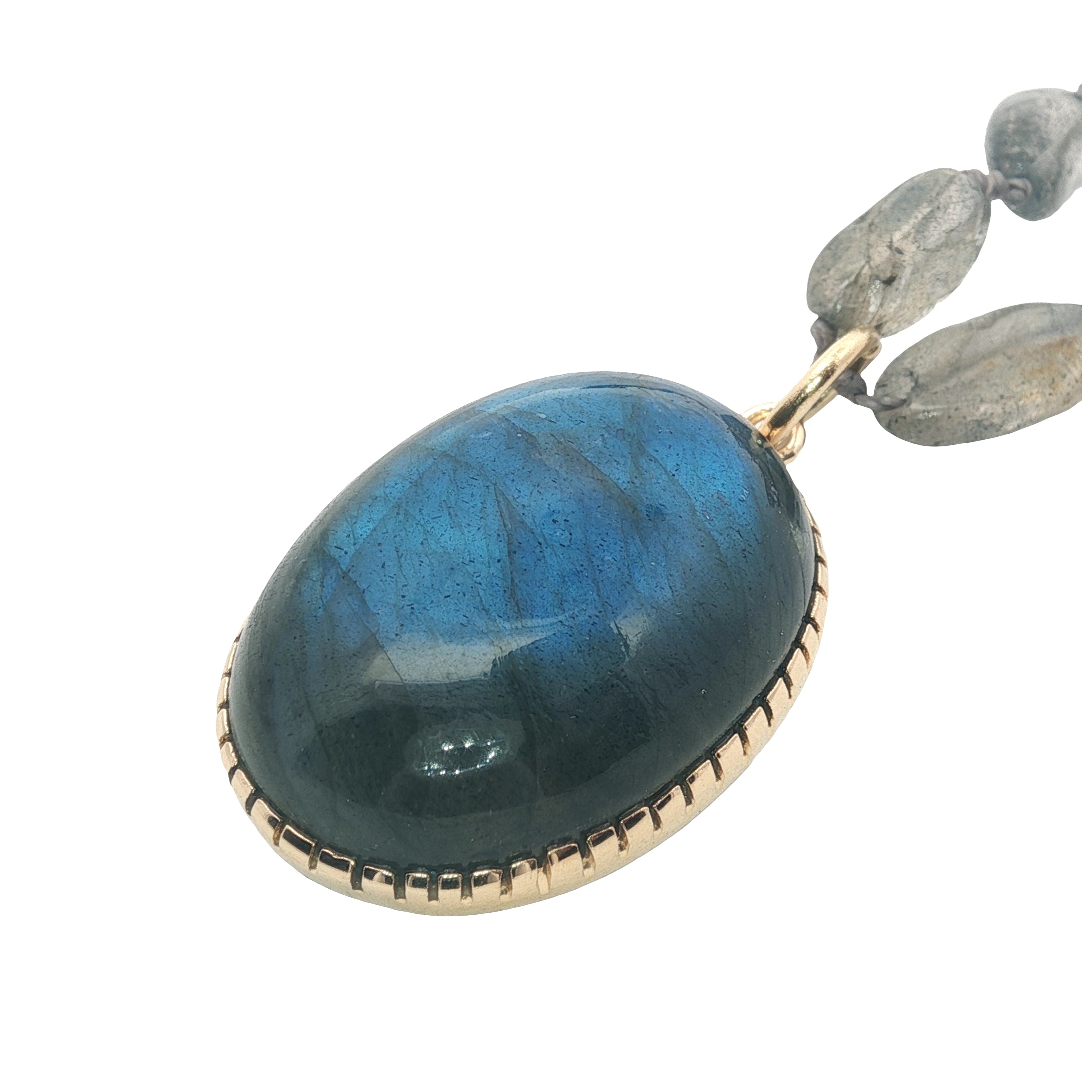 Collier doré perles et médaillon en labradorite 75 cm