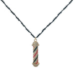 Collier doré perles onyx noire cylindre zircons email 60 cm
