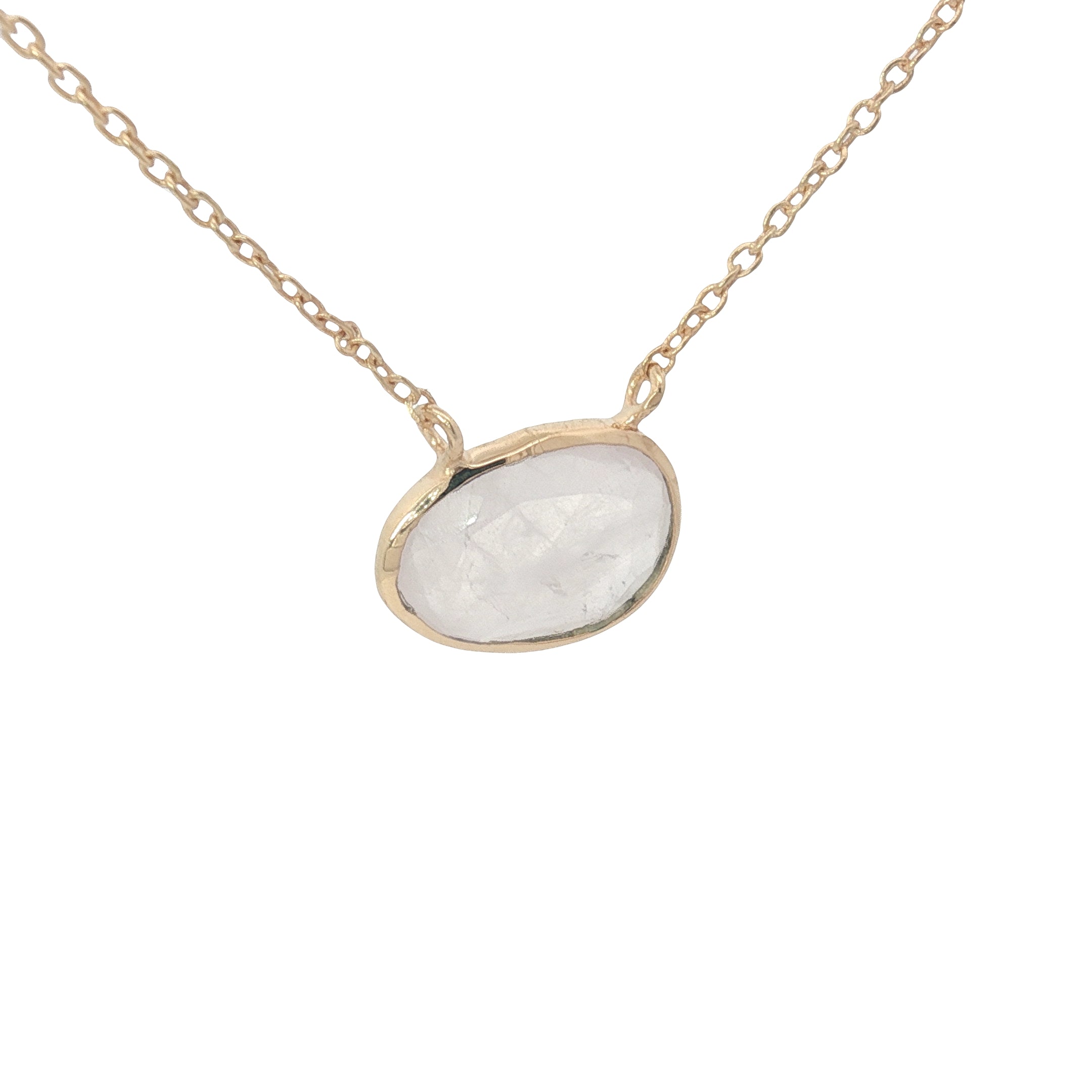 Quartz rose facetté serti clos attaché des deux côtés de la chaine : 9 mm x 13 mm