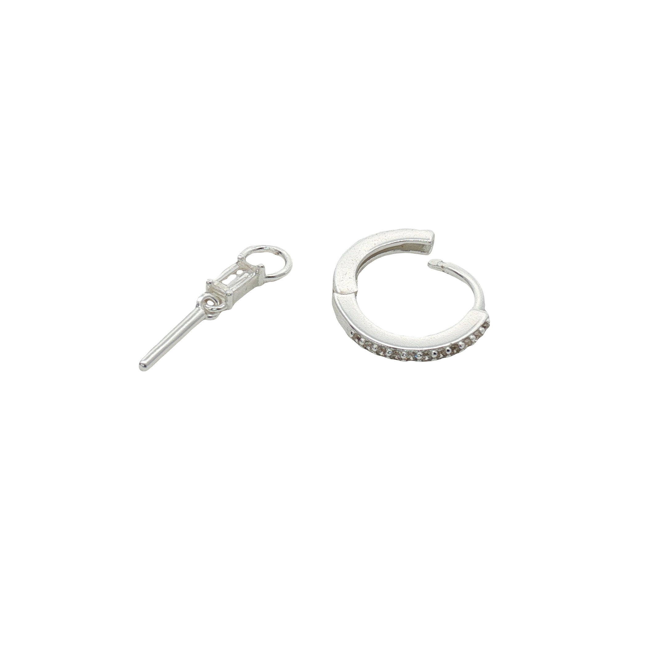 Mini créole fermée argent 925 pampille zircon baguette et tige