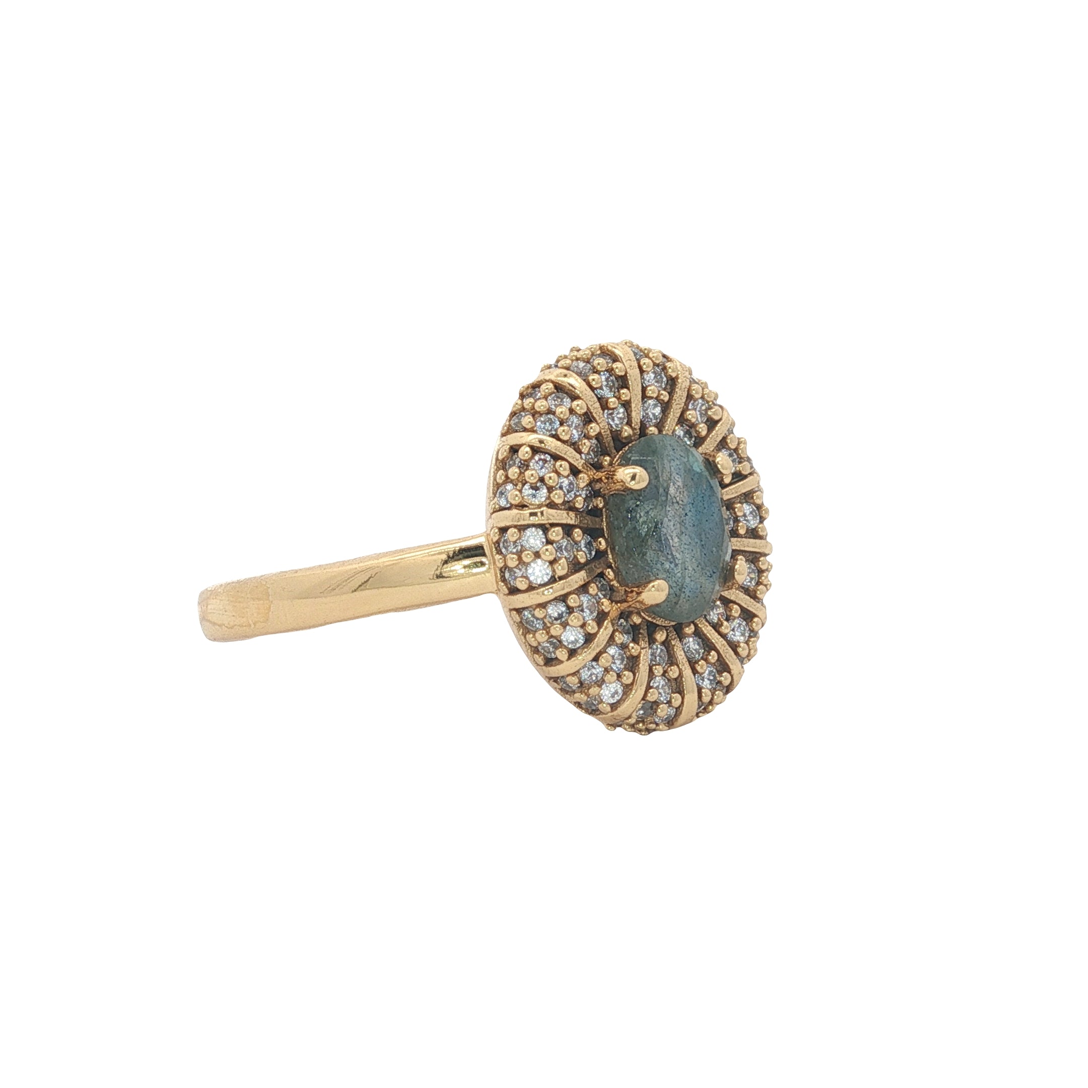 Couronne ornée de zircons blancs et barres dorées autour de la pierre : 15 mm x 13 mm