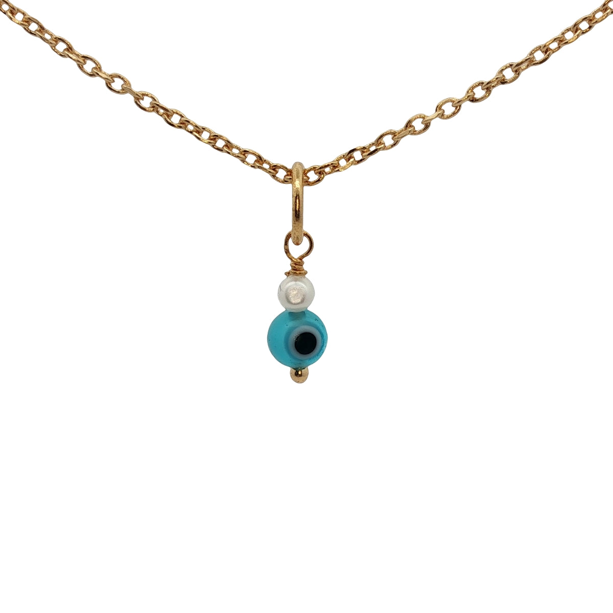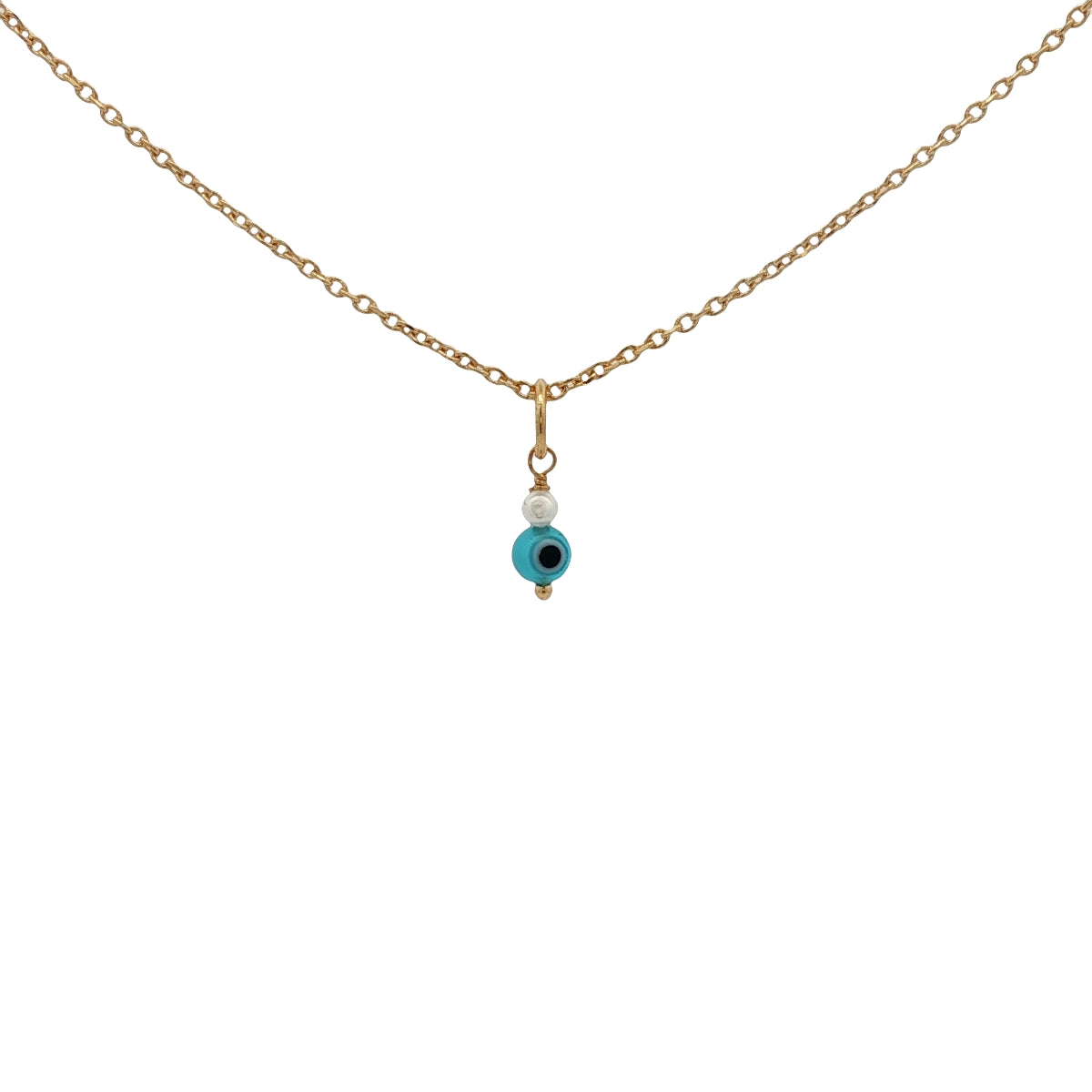 Collier doré petit oeil bleu avec perle d'eau douce 42 cm