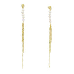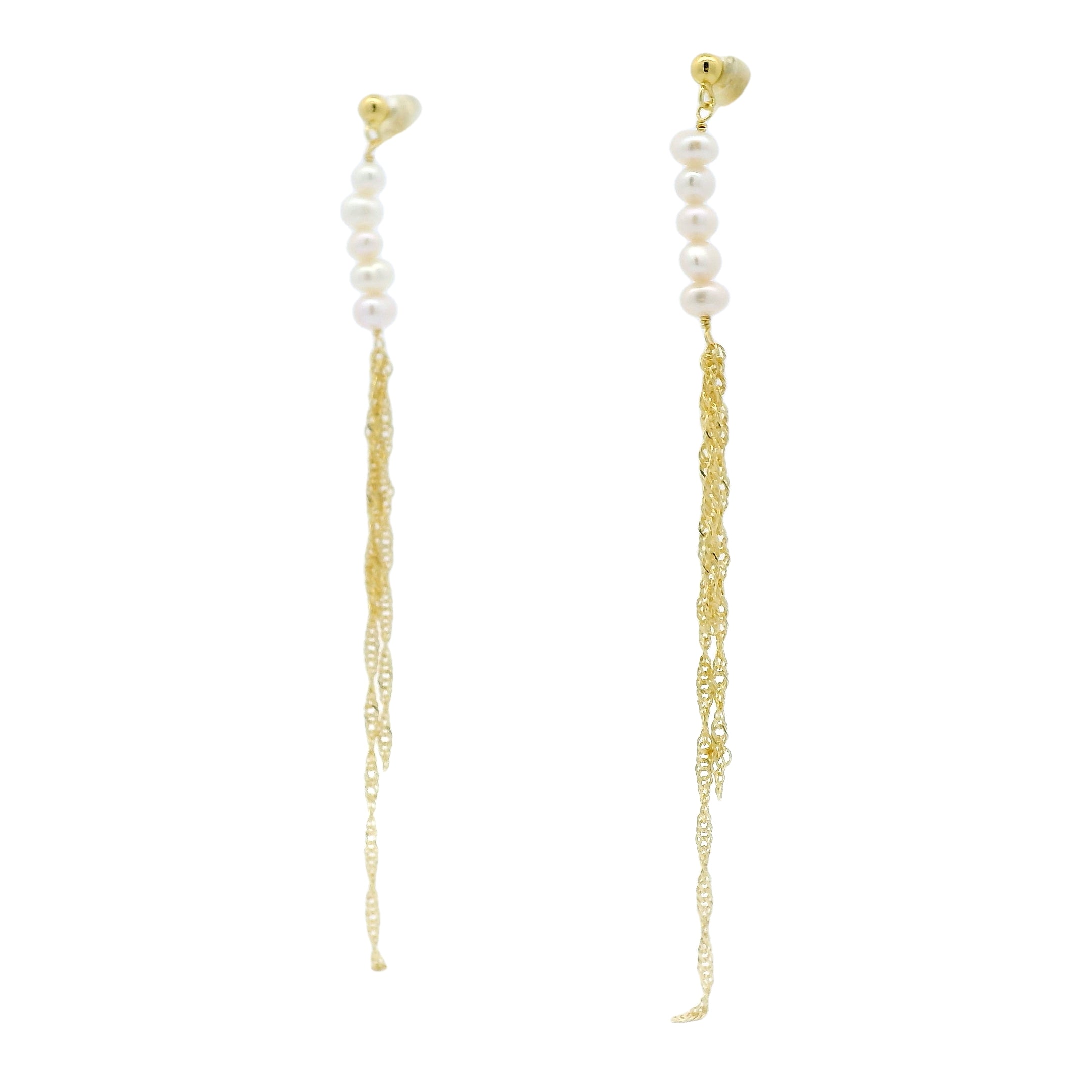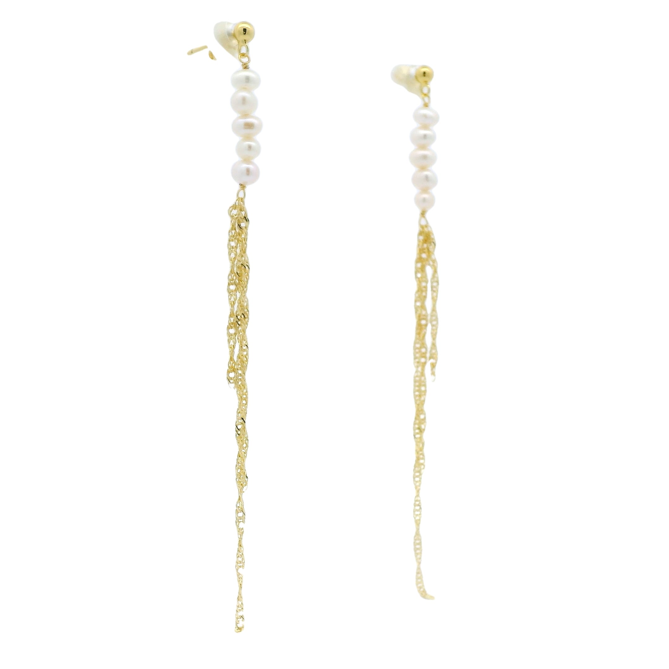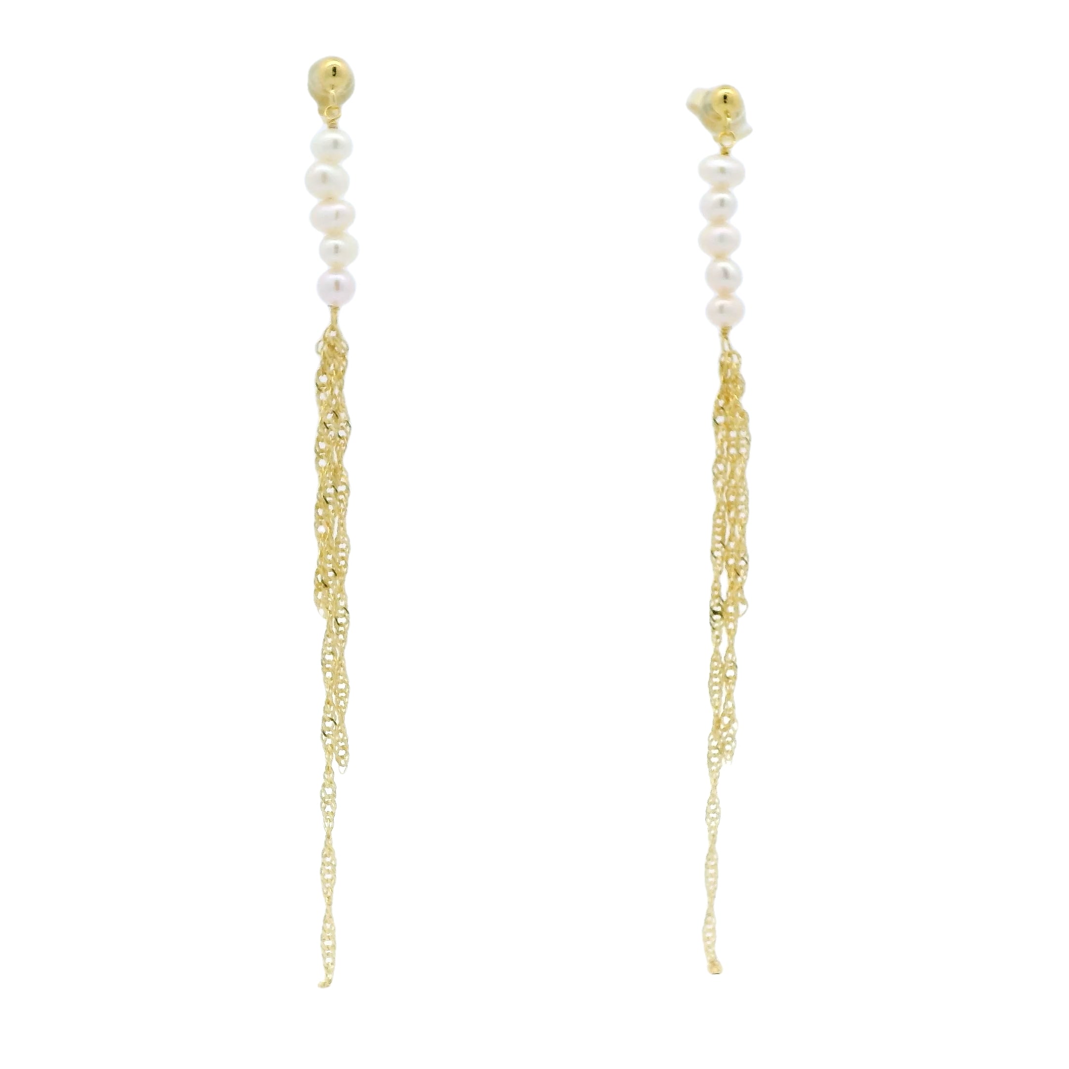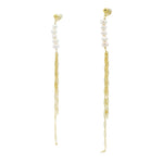 Boucles d'oreilles dorées perles de culture et chaines torsadées