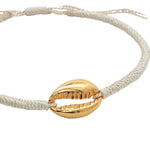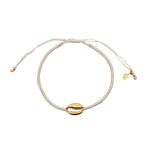 Bracelet sur cordon crème avec cauri doré