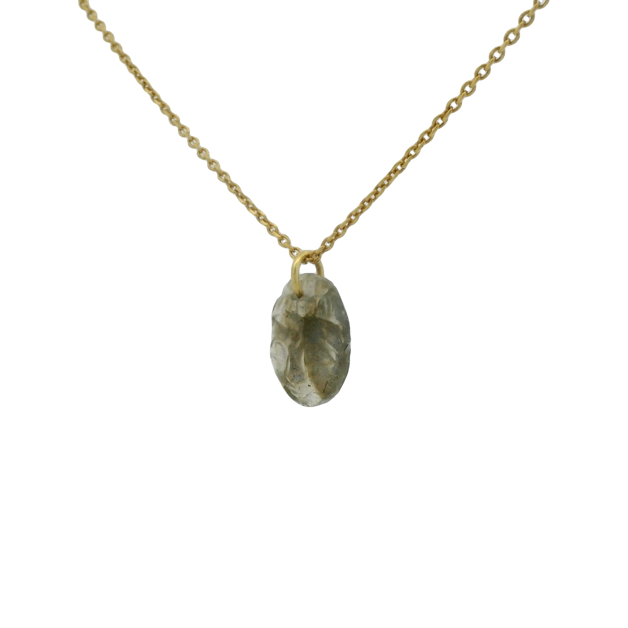 Pendentif Bouddha taillé en labradorite : 15 mm x 10 mm