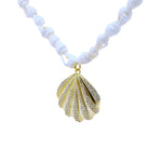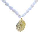 Pendentif coquillage orné de zircons blancs : 18mm x 18mm