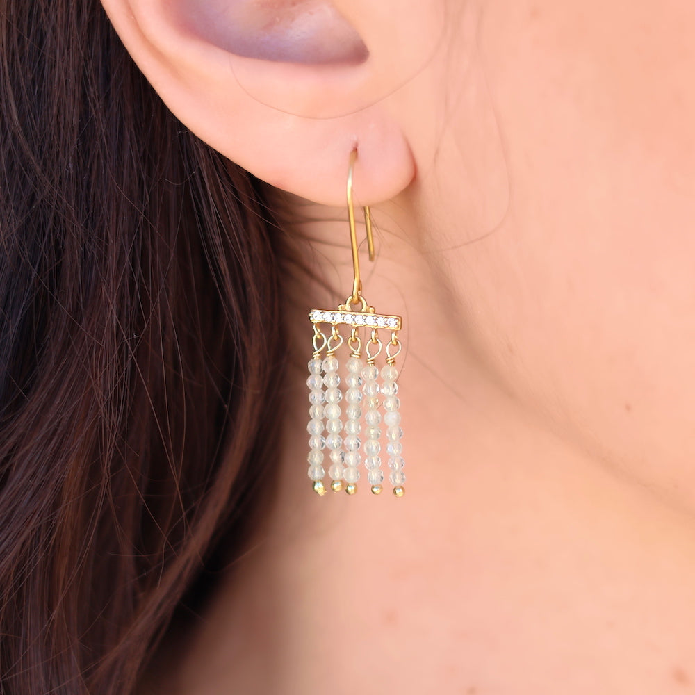 Boucles d'oreilles dorées cascade de pierres et zircons blancs