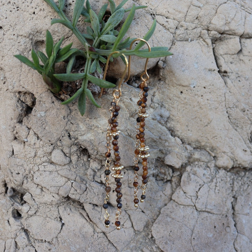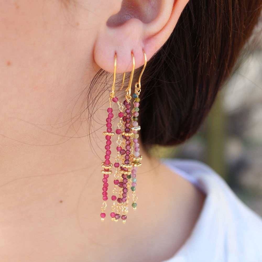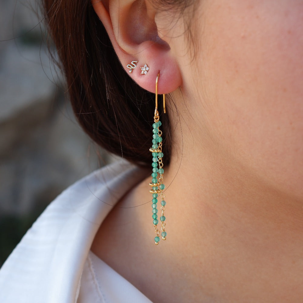 Boucles d'oreilles en laiton doré à l'or fin 18k et pierres naturelles