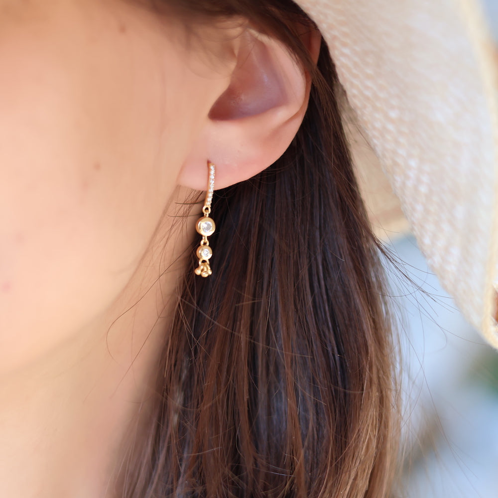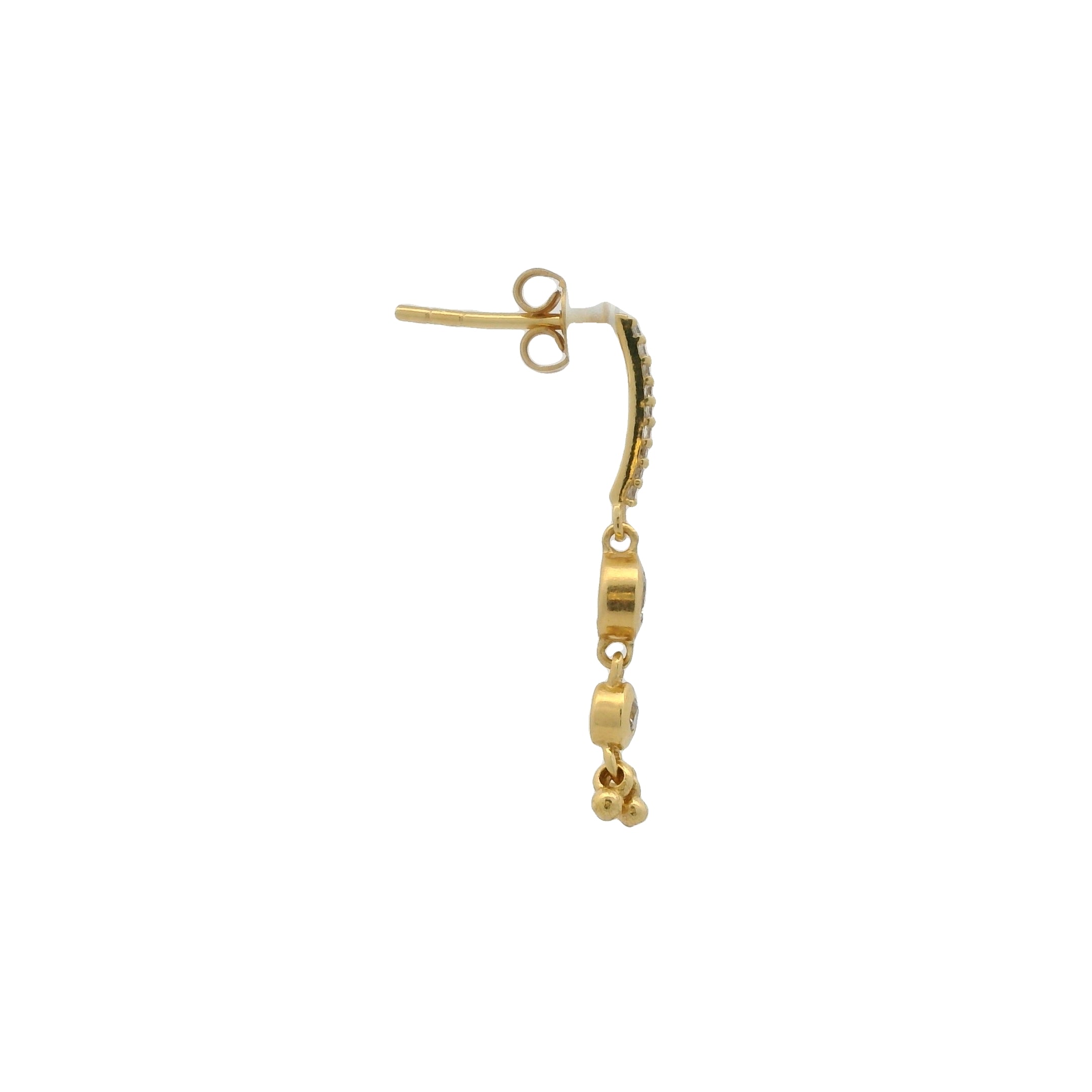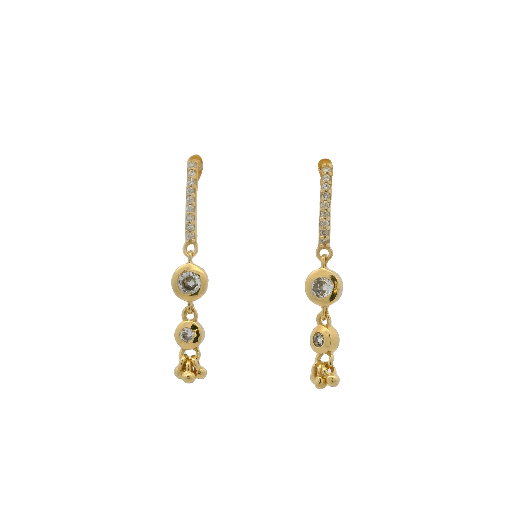 Boucles d'oreilles dorées barre en zircons blancs avec pampilles