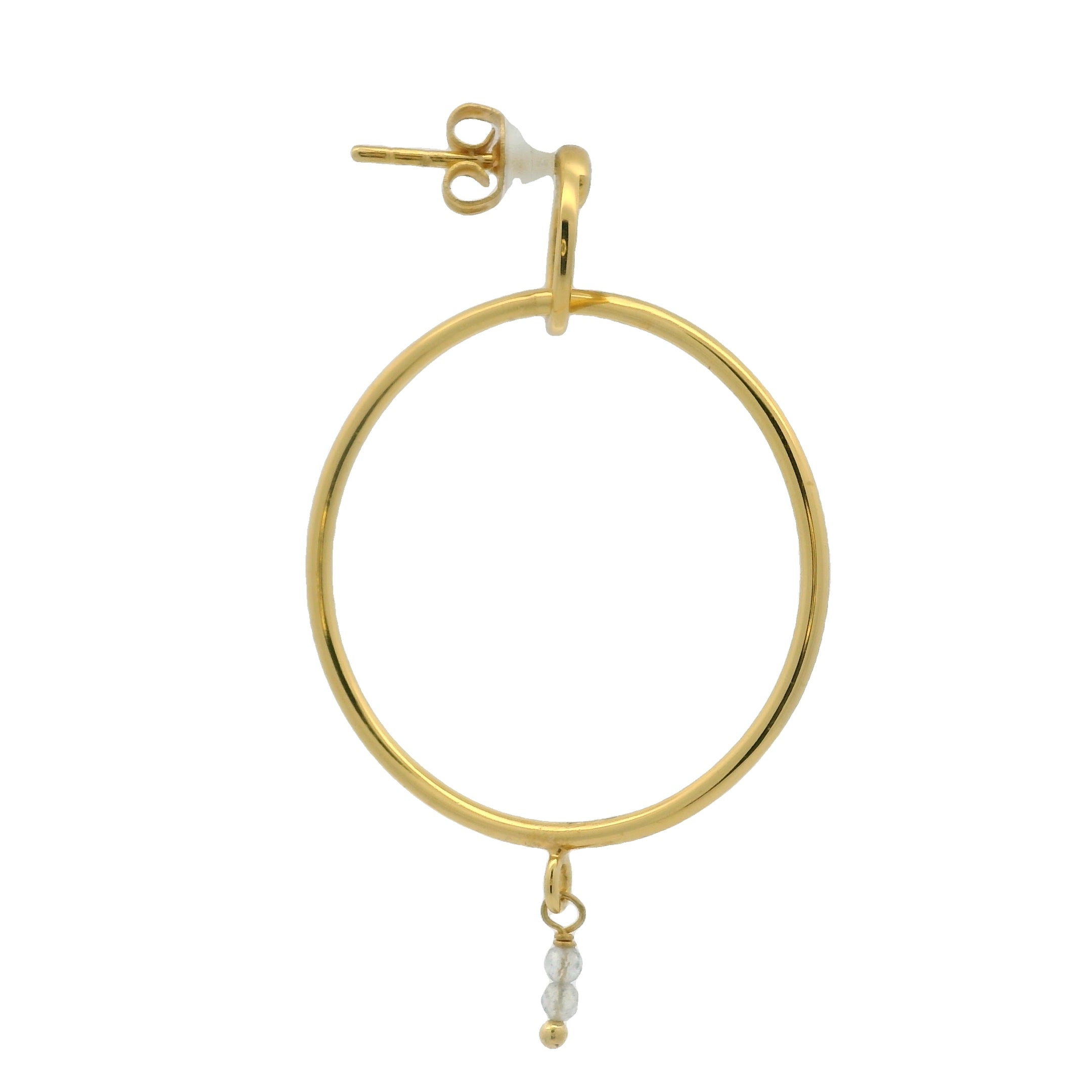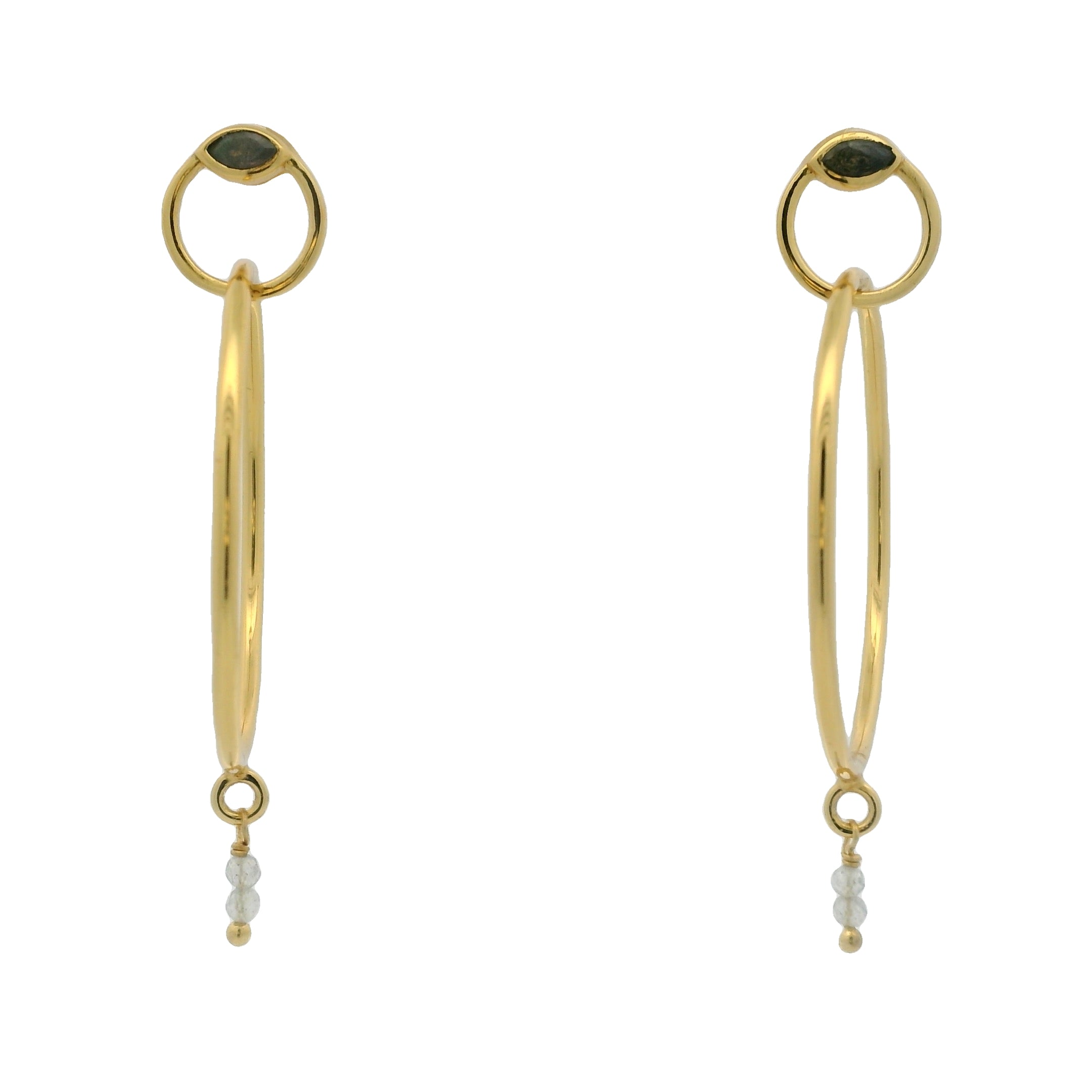 Boucles d'oreilles dorées double anneau et oeil en labradorite