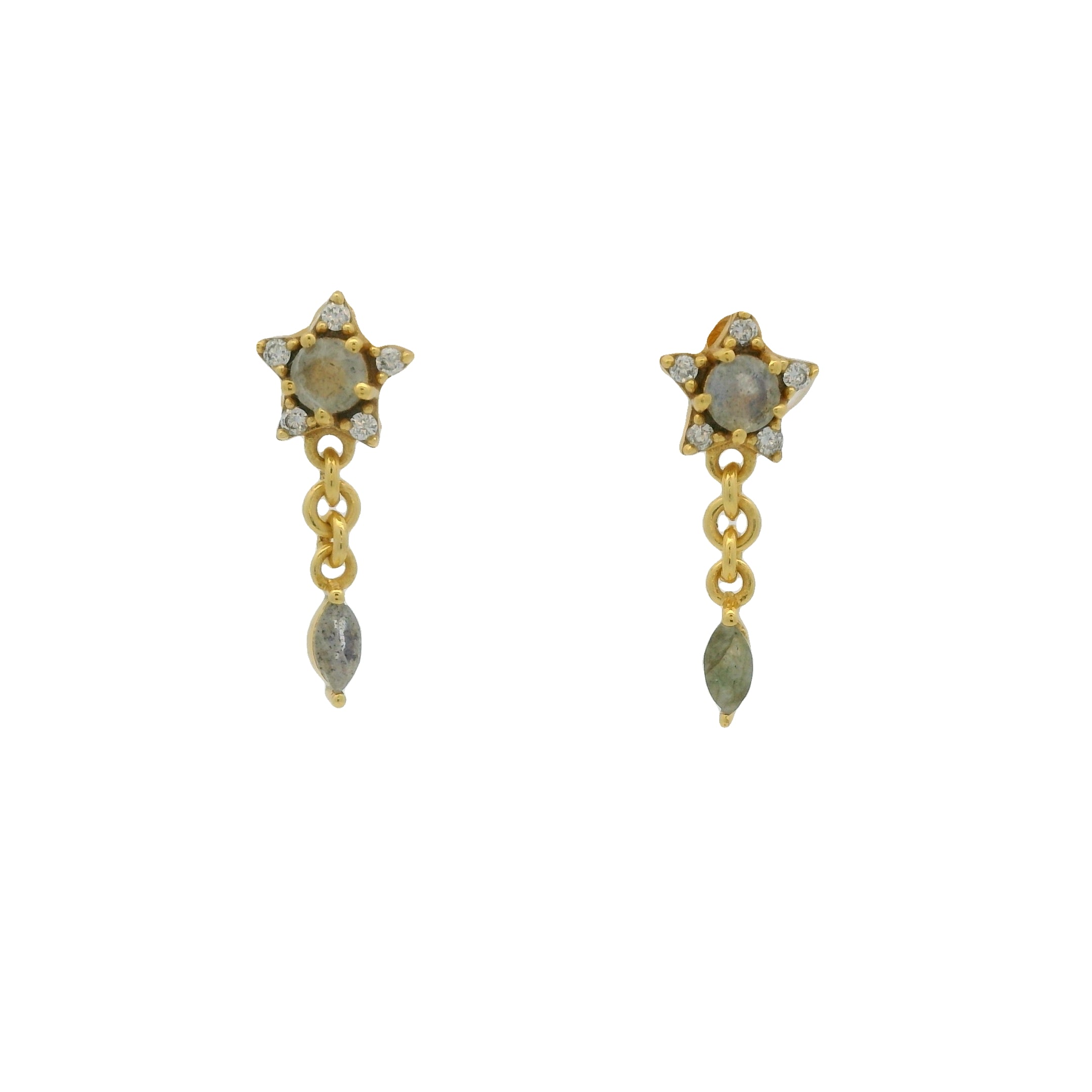 Boucles d'oreilles étoile en labradorite et zircons blancs avec pampille