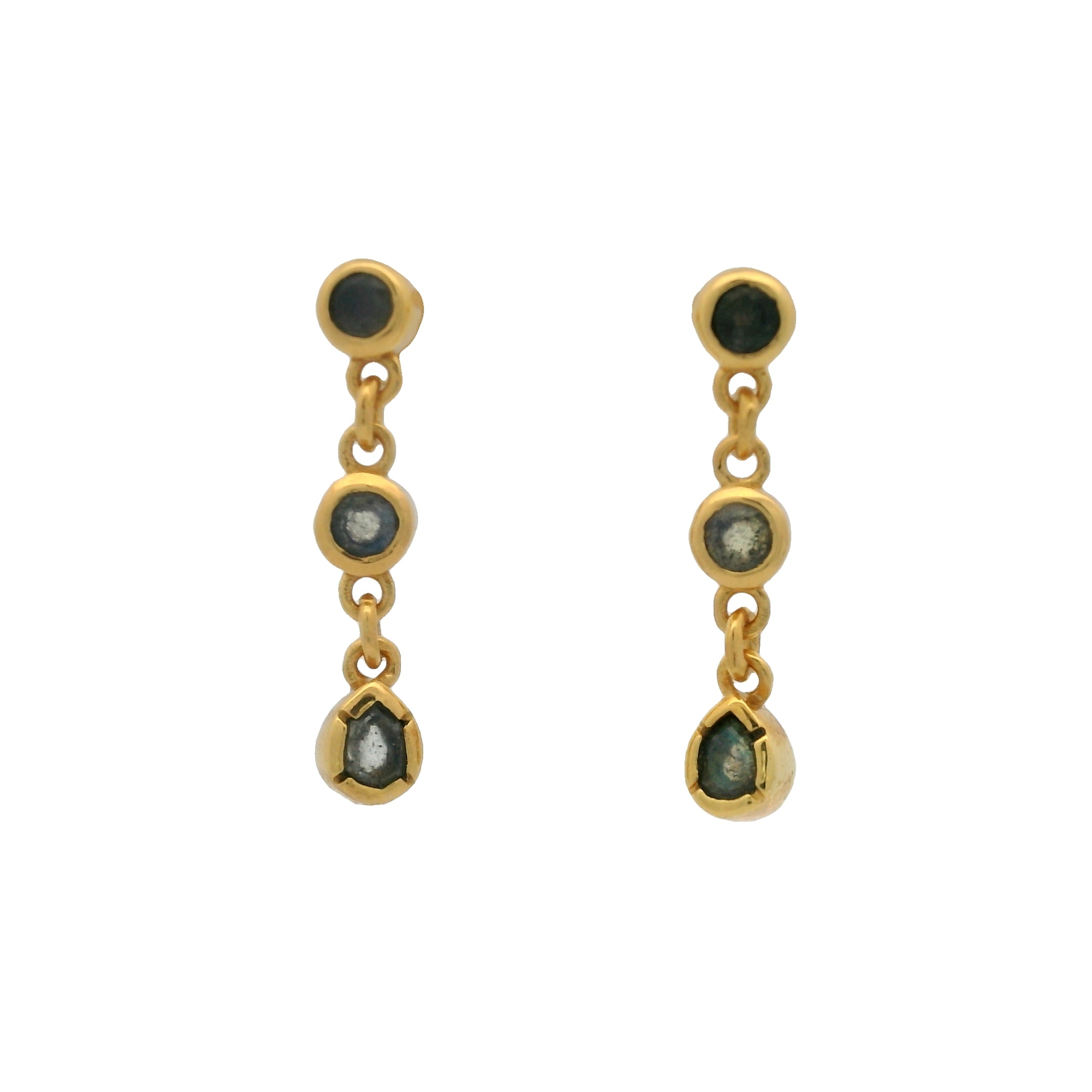 Boucles d'oreilles pendantes trio de labradorite sertie clos