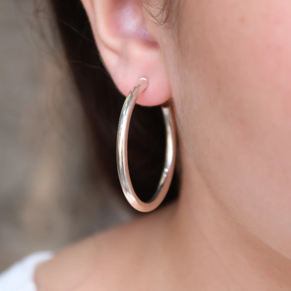 Boucles d'oreilles créoles en argent 925 de 3mm d'épaisseur.