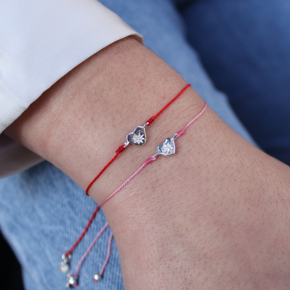 Bracelet fil fin coloré coeur argent 925 et zircon