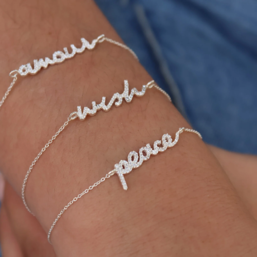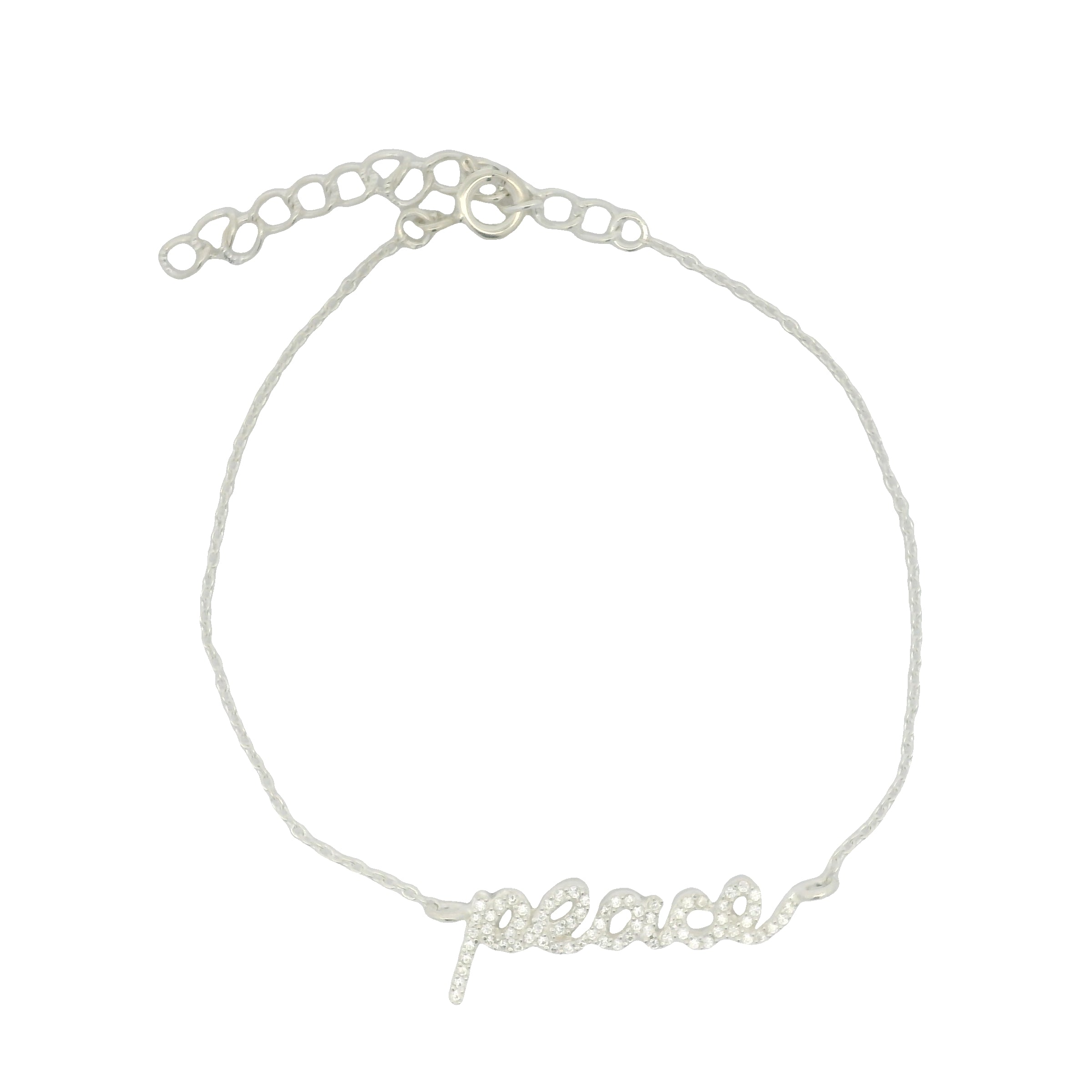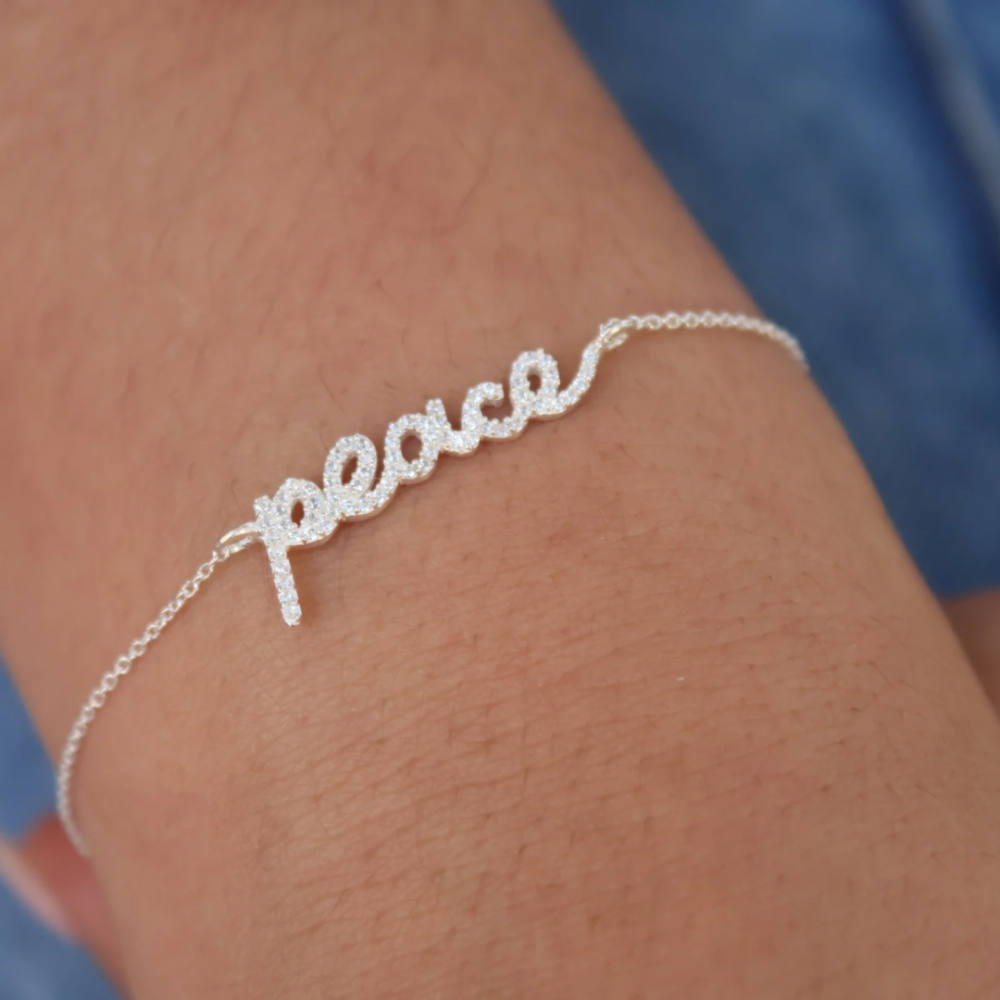 Bracelet en argent 925 message "peace" avec zircons blancs