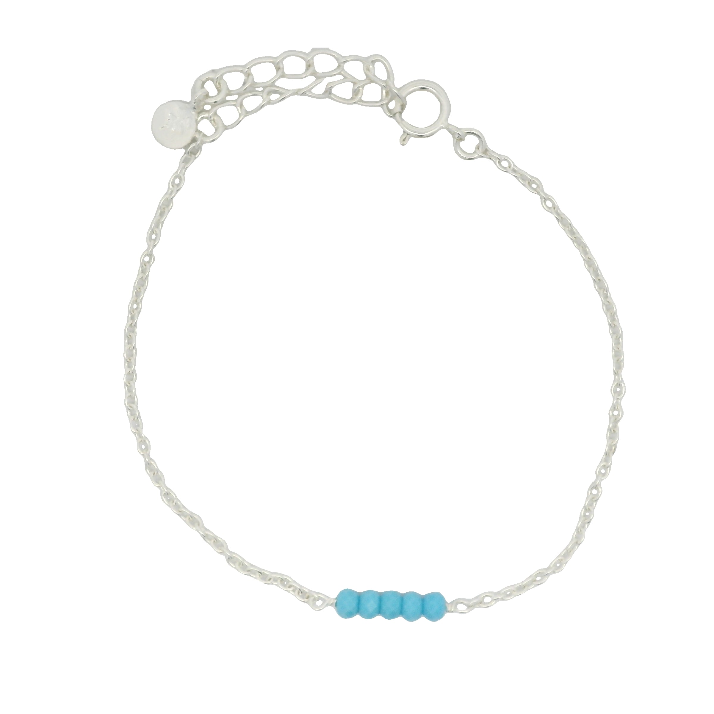Bracelet en argent 925 avec 5 pierres facettées en turquoise