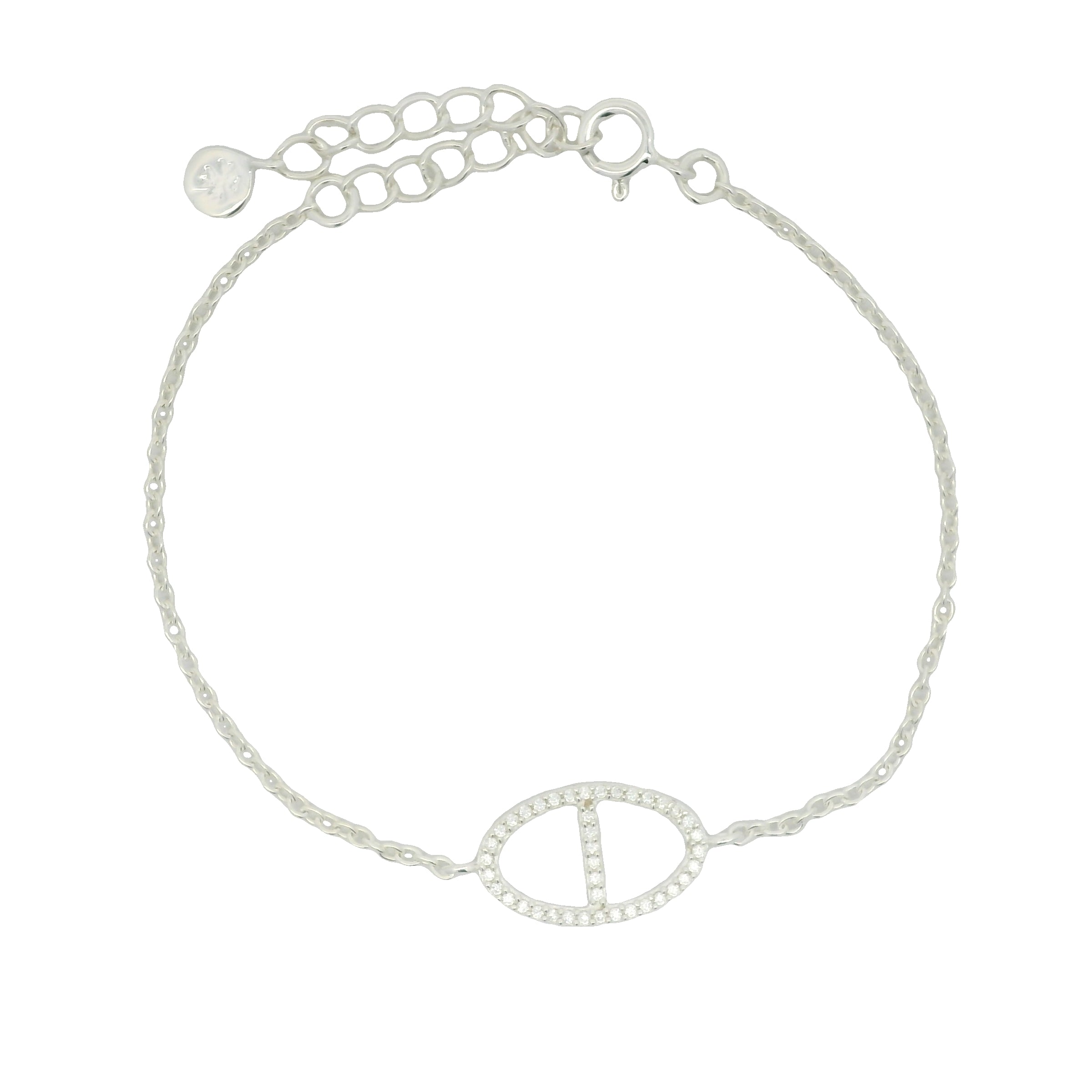 Ovale avec une barre au milieu orné de zircons blancs : 16 mm x 10 mm