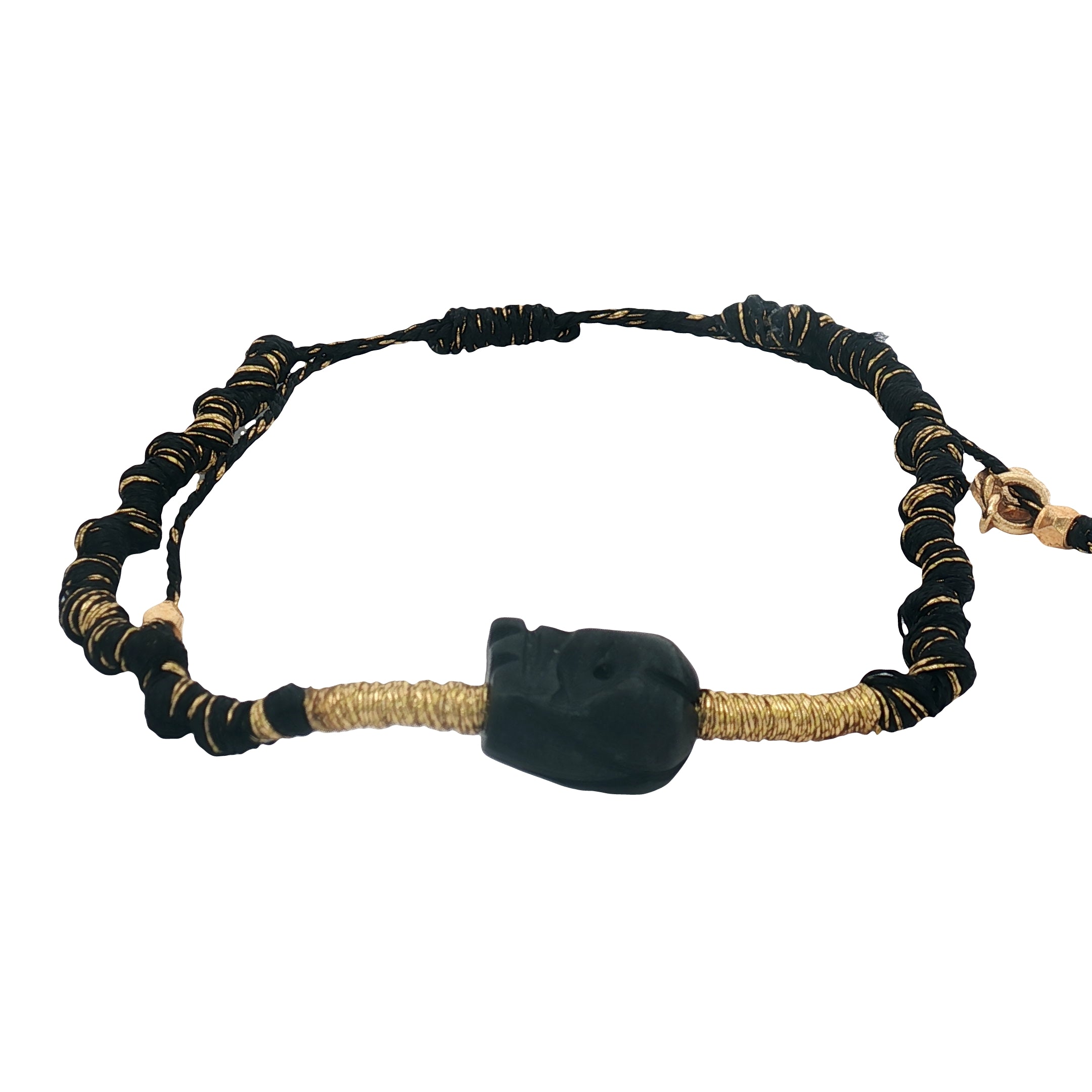 Bracelet doré cordon tressé noir et doré avec tête de mort noire