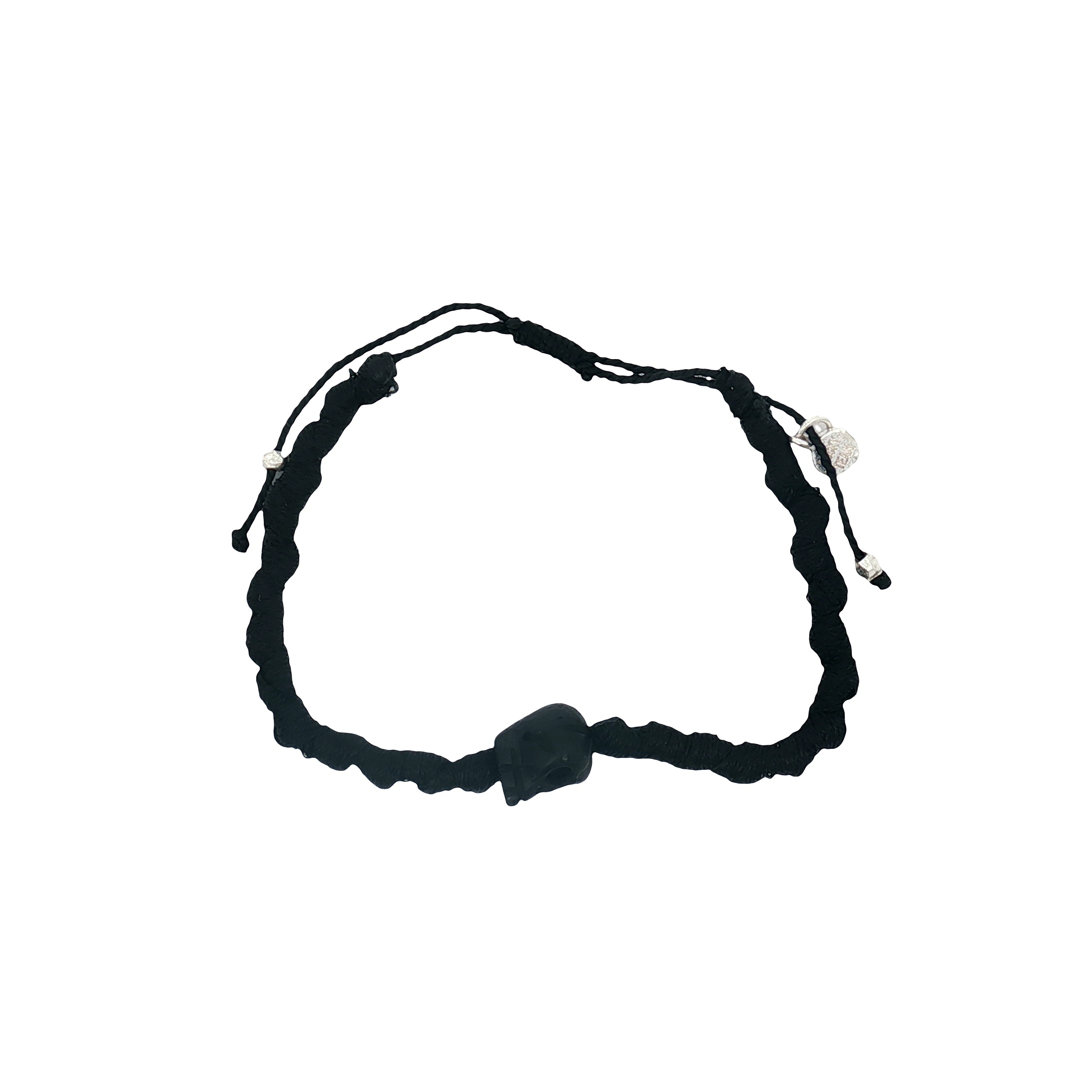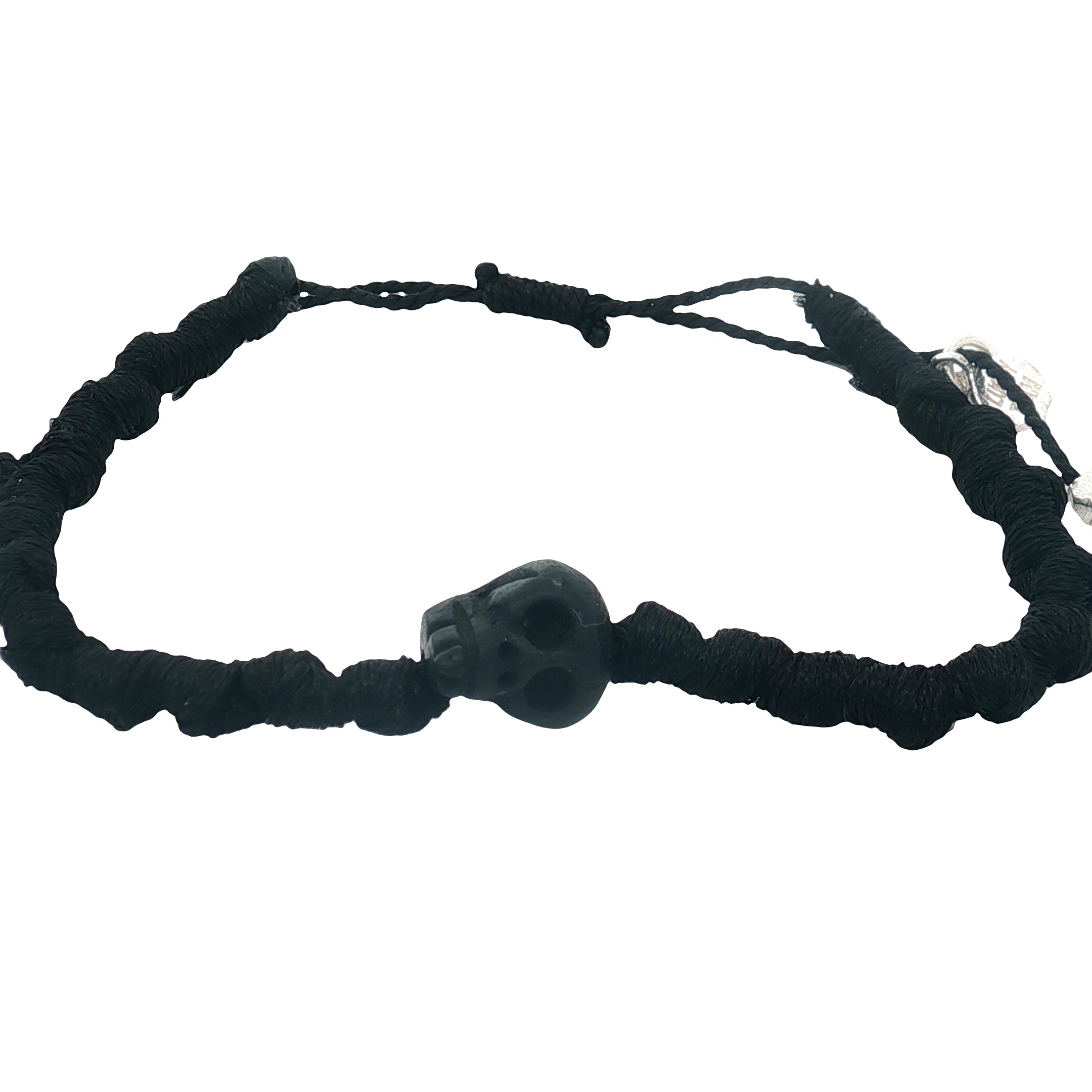 Bracelet argent 925 cordon tressé noir avec tête de mort noire