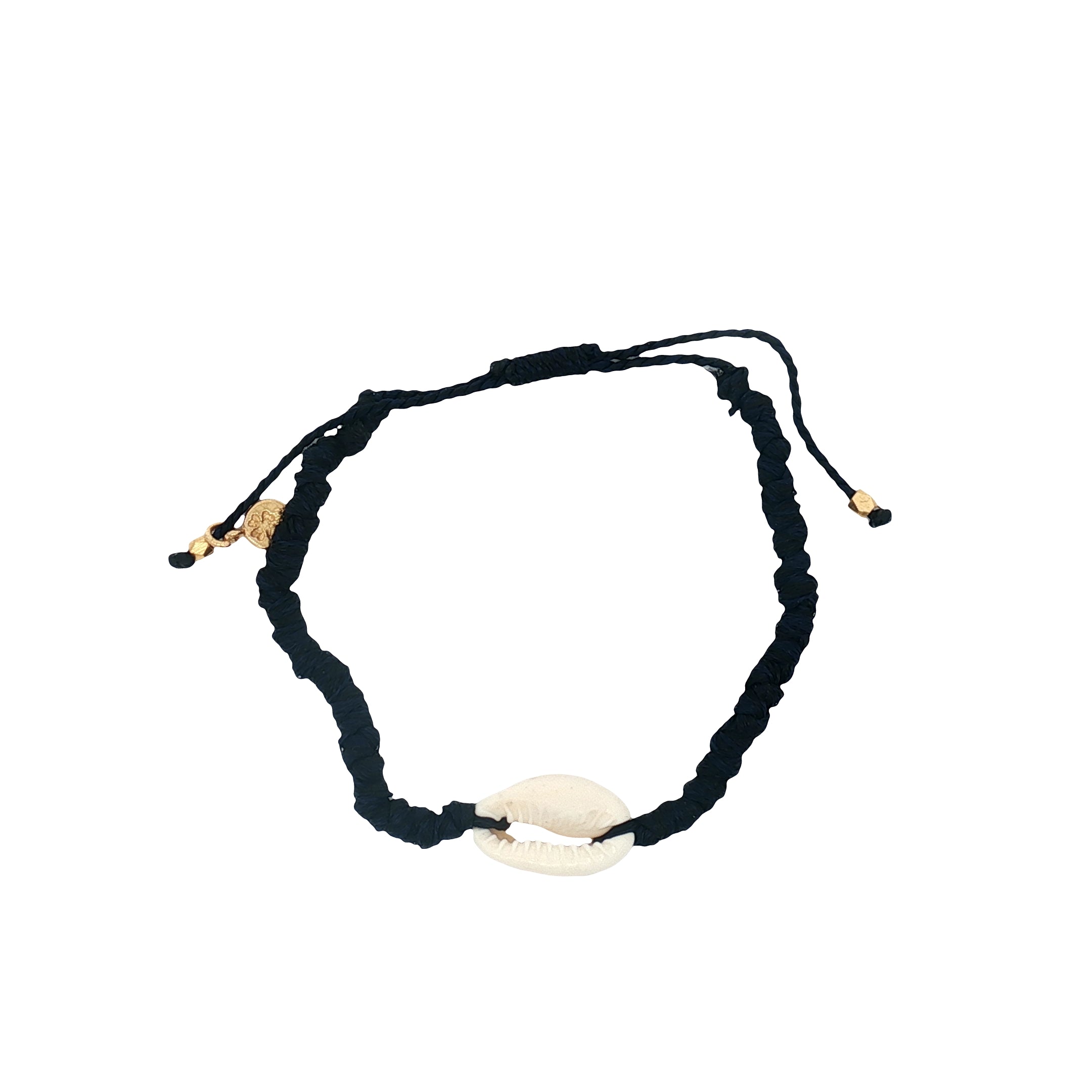 Bracelet doré cordon bleu marine cauri naturel