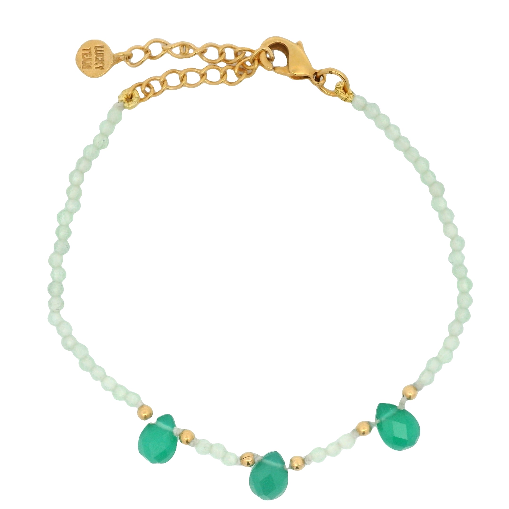 Bracelet doré 3 gouttes en onyx verte et prehnite